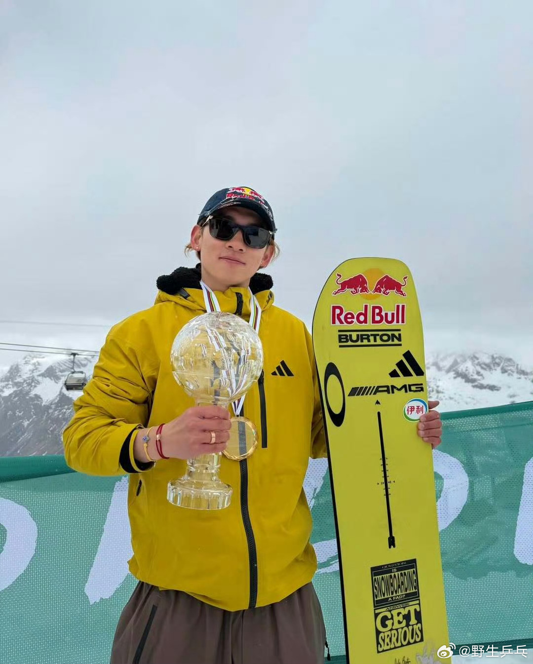 加冕单板滑雪世界杯男子坡面障碍技巧赛季总冠军,他在社媒分享捧起水晶球奖杯的照片,写道:非常感恩可以把又一座水晶球奖杯捧回家。感谢。苏翊鸣坡障世界杯赛季总冠军