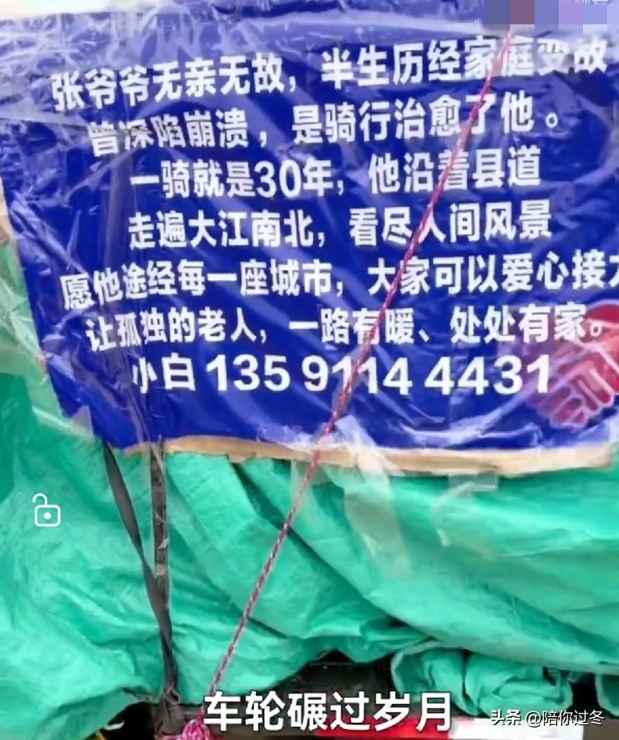 90岁老人骑行30年,治愈自己! 张爷爷真的太苦了,儿子、儿媳、孙子,都遭遇车祸离世,老伴也伤心欲绝跟着走了,只剩他一个人,于是选择了骑行来忘掉痛苦,这一骑就是30年呀! 3月29日,据大众新闻报道,福建莆田市民白女士告诉记者,90岁的张爷爷靠骑行三轮车周游全中国。 据了解得知,张爷爷之所以这样做,是因为他的儿子、儿媳、孙子,在30年前一场车祸中意外去世。老伴也因为伤心过度,在第2年也离开了。 张爷爷触景伤情,为了忘记悲痛, 决定骑着三轮车离开家乡,选择了流浪,张爷爷发现在骑行的路上,遇到许多新鲜的事和新的朋友,他觉得骑行能治愈自己的悲伤,这一坚持就是30年。 如今,张爷爷已经跑了大半个中国,去过乌鲁木齐,上海和广州,他很享受在旅途中的快乐。 在到达福建莆田时,有好心人留他过年还给他过了生日,并且有人想帮他租个房子,让他安度晚年,但是被张爷爷拒绝了。他说自己不是乞丐,想用余生的时光看遍整个中国,他想在快乐中静静的离开! 这不是逃避,而是他选的活法,拒绝安稳,只想在路上看风景、找老友。有些痛只能自己扛,愿他一路平安,到哪都能遇到好心人被温柔以待![祈祷]治愈系老人