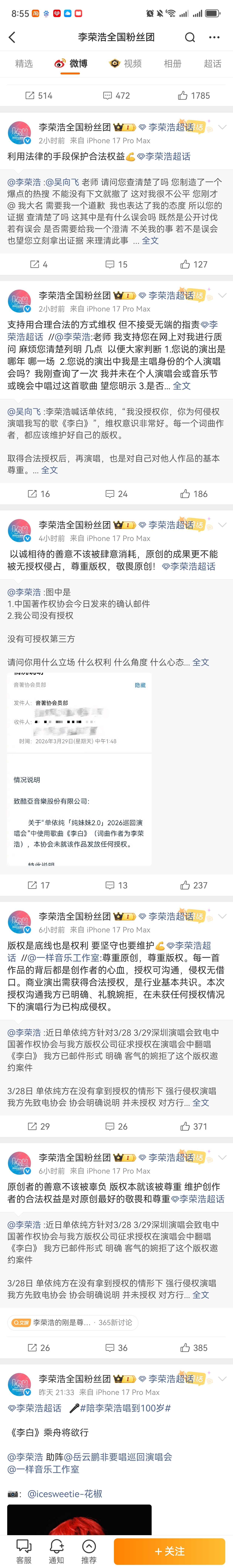 事发到现在6个小时了,李荣浩工作室和粉丝团的工作量如下👇
