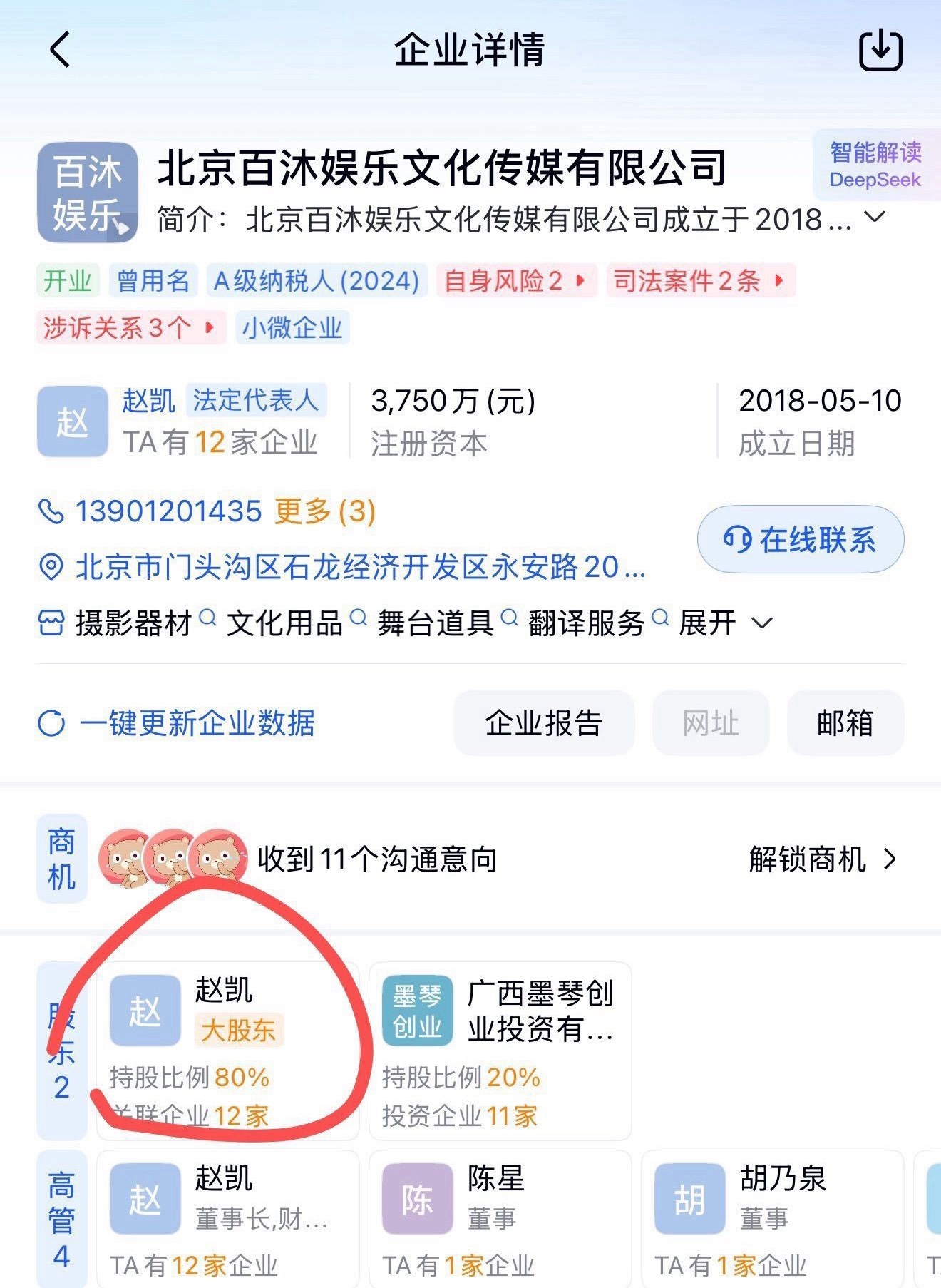 单依纯的助理兼老板被扒🍉!这人身份不简单,名为赵凯,经营着北京百沐霖涧餐饮娱乐