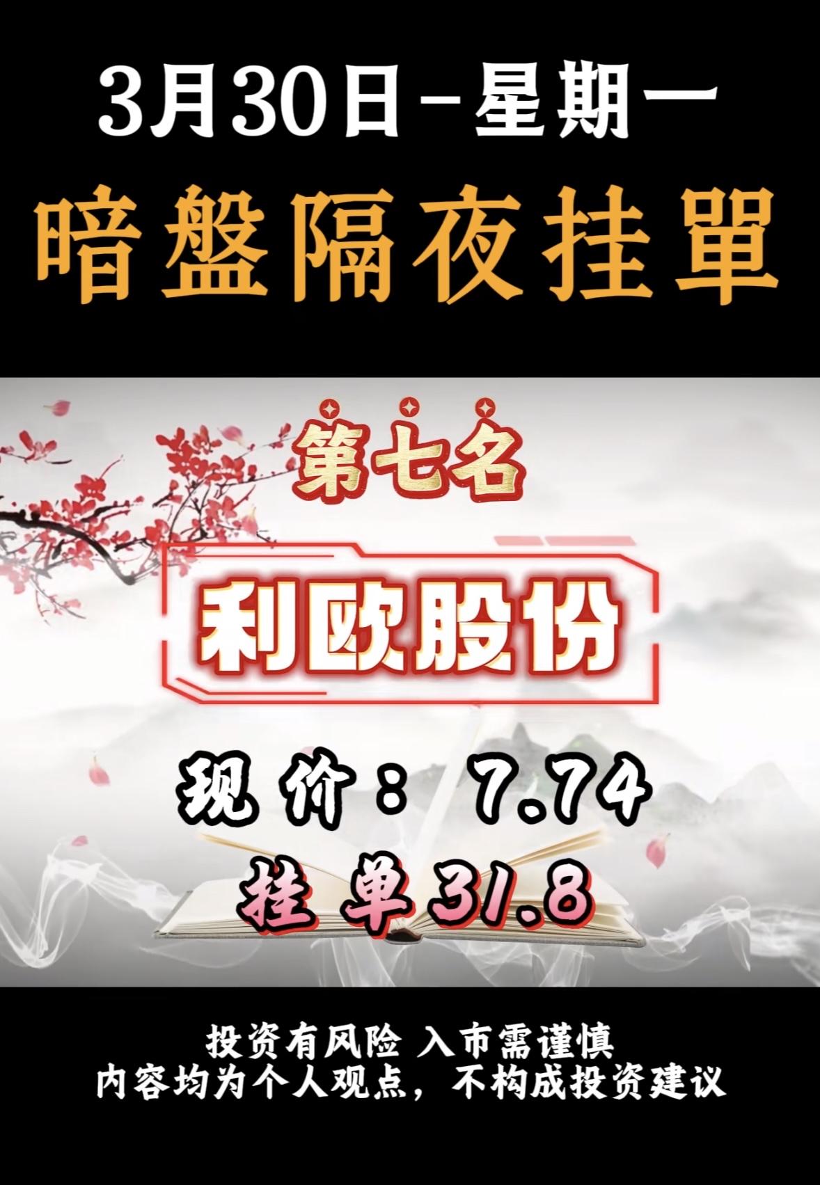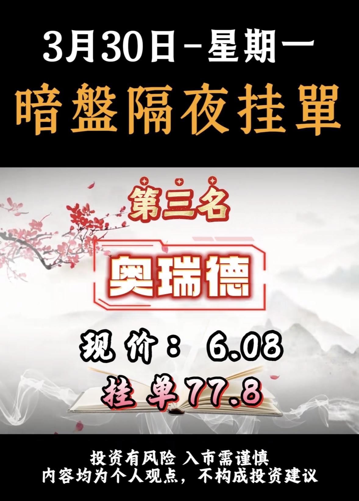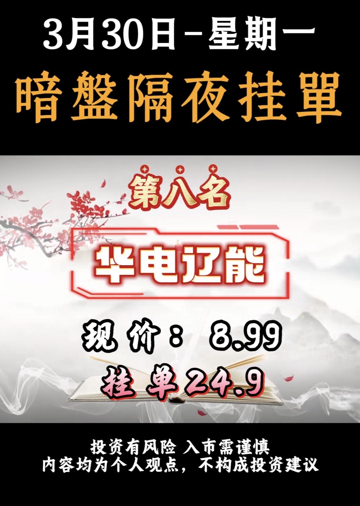 3月30日周一暗盘隔夜挂单个股排行榜出炉 3月30日华电辽能暗盘隔夜挂单很是引