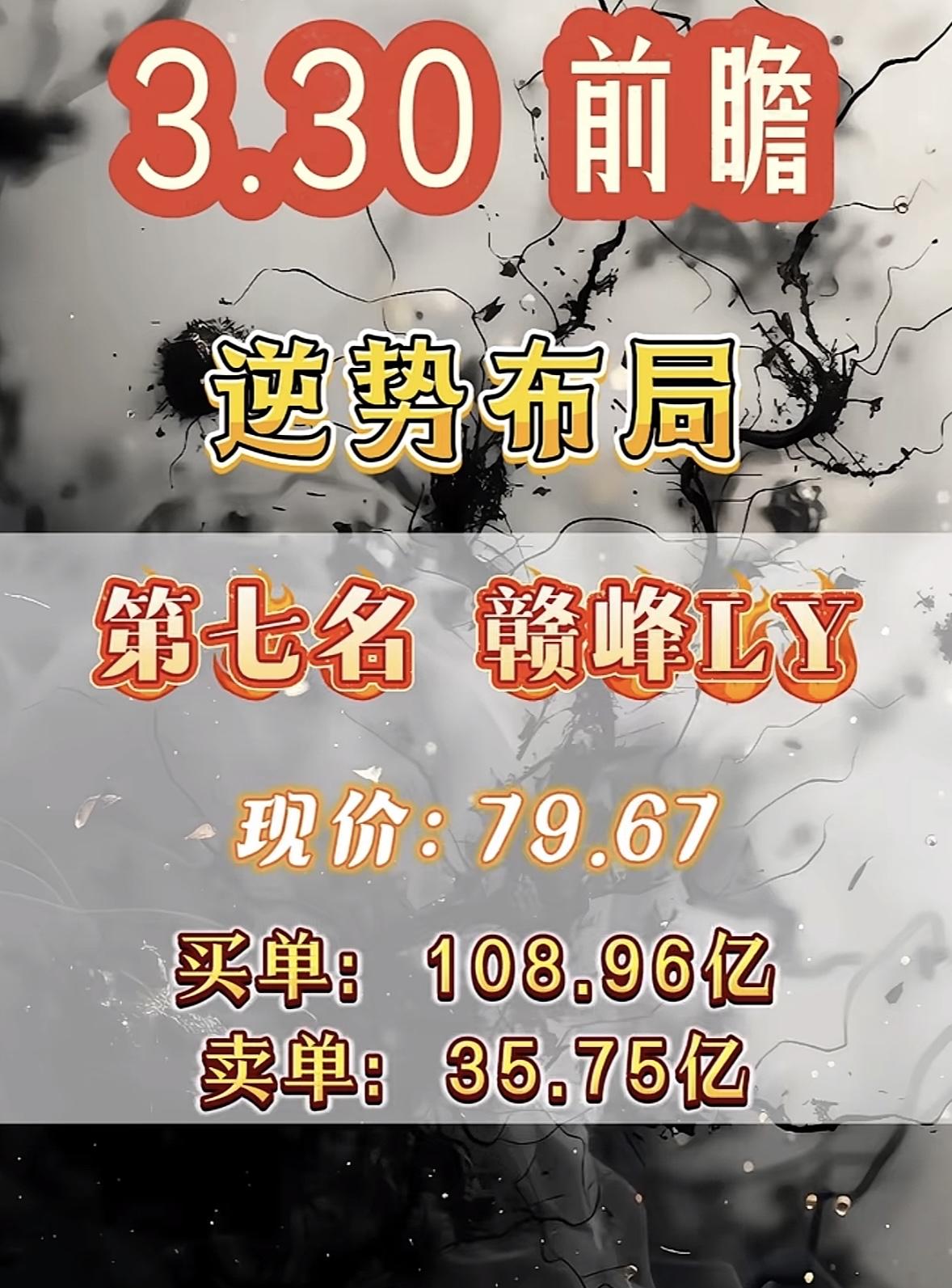 3月30日暗盘隔夜挂单排行榜揭晓 3.30前瞻里,赣锋锂业有点意思。现价79.67,买单108.96亿,卖单35.75亿,这买单和卖单差距不小啊。之前赣锋锂业股价跌到65元以下,很多人就开始纠结是进场还是观望。其实这波调整是行业周期从低谷往上转的正常过程,前期下跌消化了悲观情绪,股价刚好踩中锂产业的周期拐点。2026年2月数据显示,全球锂市场结束了连续两年供大于求的情况。拉长时间看,赣锋锂业近一年股价涨了85.24%,现在逆势布局说不定是个机会呢。