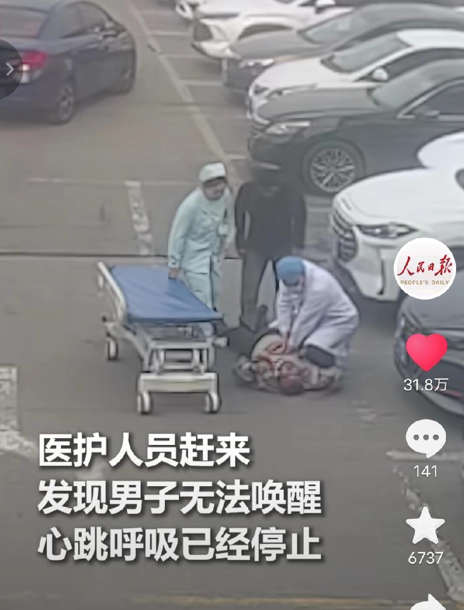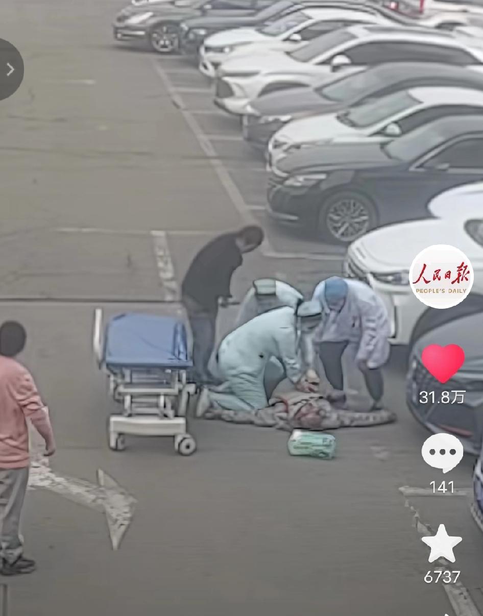 生死4分钟!36岁男子医院停车场突然倒地,医护跪地抢救看哭全网:这一幕,才是人间底气 2026年3月,国内一家医院的停车场里,人来人往,平常又安静。谁也没有想到,一场突如其来的意外,会在这里上演一场与死神赛跑的生死救援。 这名男子那年36岁,正是上有老、下有小的年纪。本该是家里顶梁柱的岁数,身体却早已在常年奔波、熬夜操劳里,悄悄埋下了隐患。他只是像平常一样,在停车场里走着,没有任何征兆,眼前一黑,身子一软,直挺挺倒在了地上。 前一秒还在行走,下一秒就没了意识、没了呼吸。 突如其来的一幕,把旁边路过的人瞬间吓愣了。 同行的男子反应过来,脑子“嗡”的一声,头皮发麻。他知道,这种突然倒地,每一秒都关乎生死,耽误不起。他几乎是本能地拔腿就往医院楼里冲,一边跑一边喊人,声音都带着发颤:“有人晕倒了!快救人!” 他很清楚,这里是医院,是离希望最近的地方,可他也更清楚,黄金抢救时间只有短短几分钟。晚一步,可能就是天人永隔。 没等多久,几道白色身影从门诊楼里快步冲出来,护士推着抢救床,医生手里攥着急救设备,脚步急促,神情凝重。周围的人下意识让开一条路,空气里只剩下紧张的气息。 医生快步蹲下身,指尖一探颈动脉,脸色瞬间沉了下来。 没有搏动,没有呼吸,人已经完全失去反应,处在最危险的边缘。 没有丝毫犹豫,医生直接跪在了停车场冰冷坚硬的地面上。 双膝着地,上身前倾,双臂绷直,一下、又一下,标准而有力的胸外按压,动作干脆、沉稳、没有半点慌乱。 每一次按压,都是在和死神抢人; 每一次停顿,都让人揪紧心口。 很快,更多医护人员陆续赶到,有人拿除颤仪,有人准备药物,有人建立通道,有人在旁轻声计时、提醒节奏。没有人指挥,却配合得天衣无缝,一连串动作行云流水,教科书式的急救,在停车场里无声展开。 地上冰凉,跪久了膝盖发麻,医生全然顾不上; 额头渗出汗珠,手臂越来越酸,他们也没有慢下半分。 在场所有人心里都只有一个念头:快一点,再快一点,一定要把人拉回来。 几十秒、几分钟,在那一刻漫长得像几个小时。 不知过了多久,随着一次除颤结束,男子的胸口终于轻轻起伏了一下,渐渐恢复了微弱的心跳与呼吸。原本紧绷到极致的气氛,才稍稍松了一丝。 医护人员不敢耽搁,小心翼翼将人抬上抢救床,一路快步送往病房继续治疗。 一条年轻的生命,就这样被从鬼门关硬生生拽了回来。 这段救援视频,后来被人民日报发布,瞬间戳中无数人。 网友看得鼻酸,纷纷留言: “明明是在医院,却看得手心冒汗。” “他们跪下的那一刻,真的破防了。” “这才是我们最该敬佩的人。” 这件事看着突然,却戳中了太多普通人的现实: 36岁,正是最不敢倒下的年纪。 要养家,要糊口,要扛责任,要撑生活,常常熬夜、疲惫、压力缠身,明明身体已经在报警,却总想着扛一扛、忍一忍就过去了。 我们总以为意外离自己很远,却不知猝死从不会挑选年龄; 我们总觉得年轻就是资本,却忘了身体从不会无缘无故透支。 而最让人安心的,从来不是运气, 是有人在你命悬一线时,不顾一切、拼尽全力,向你伸出手。 没有惊天动地的台词,没有刻意煽情的画面, 只有一群普通人,穿着白衣,守着职责,在最关键的时刻,用专业和坚持,托起一个家庭的希望。 人间最暖,不过是有人拼命护你周全; 人生最贵,不过是平安健康,家人安稳 消息来源:人民日报及网络公开内容,本文配图/视频素材来自人民日报,仅用于纪实分享与社会观察,如有侵权请联系删除,谢谢!