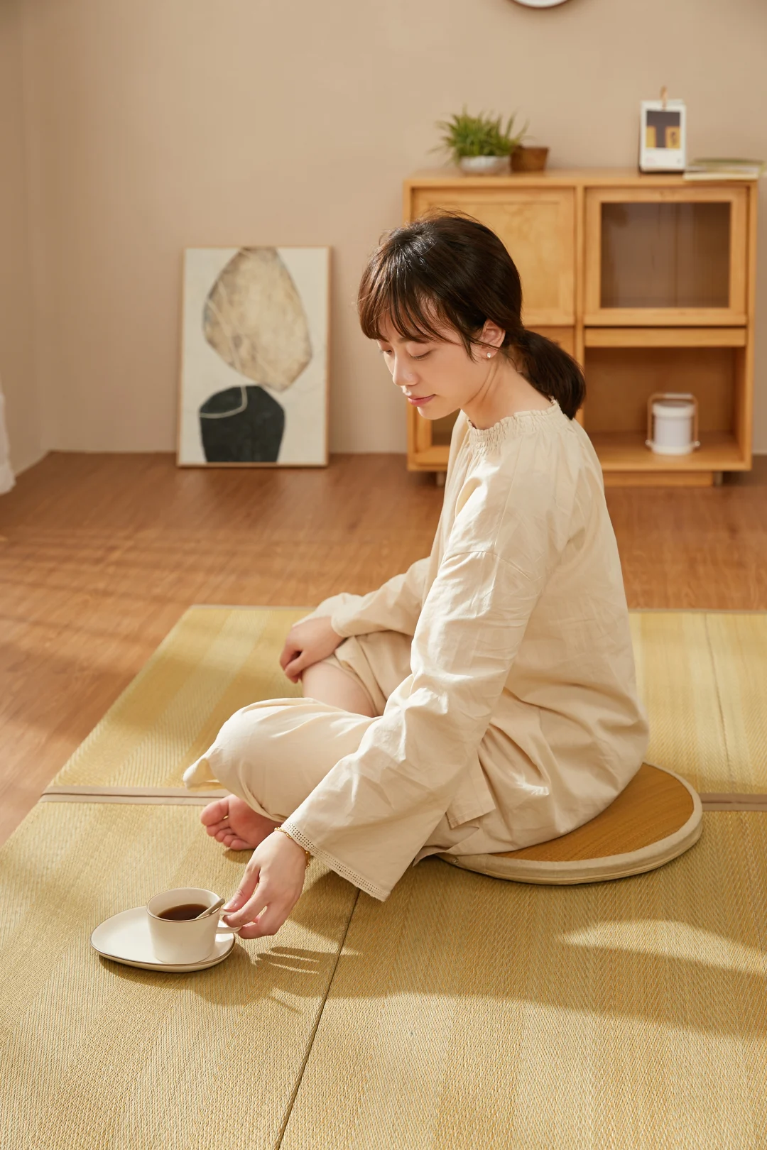 家居美学 养生日常 艾绒坐垫 祛湿驱寒 治愈系家居 坐垫地上 蒲团坐垫 榻榻米茶室