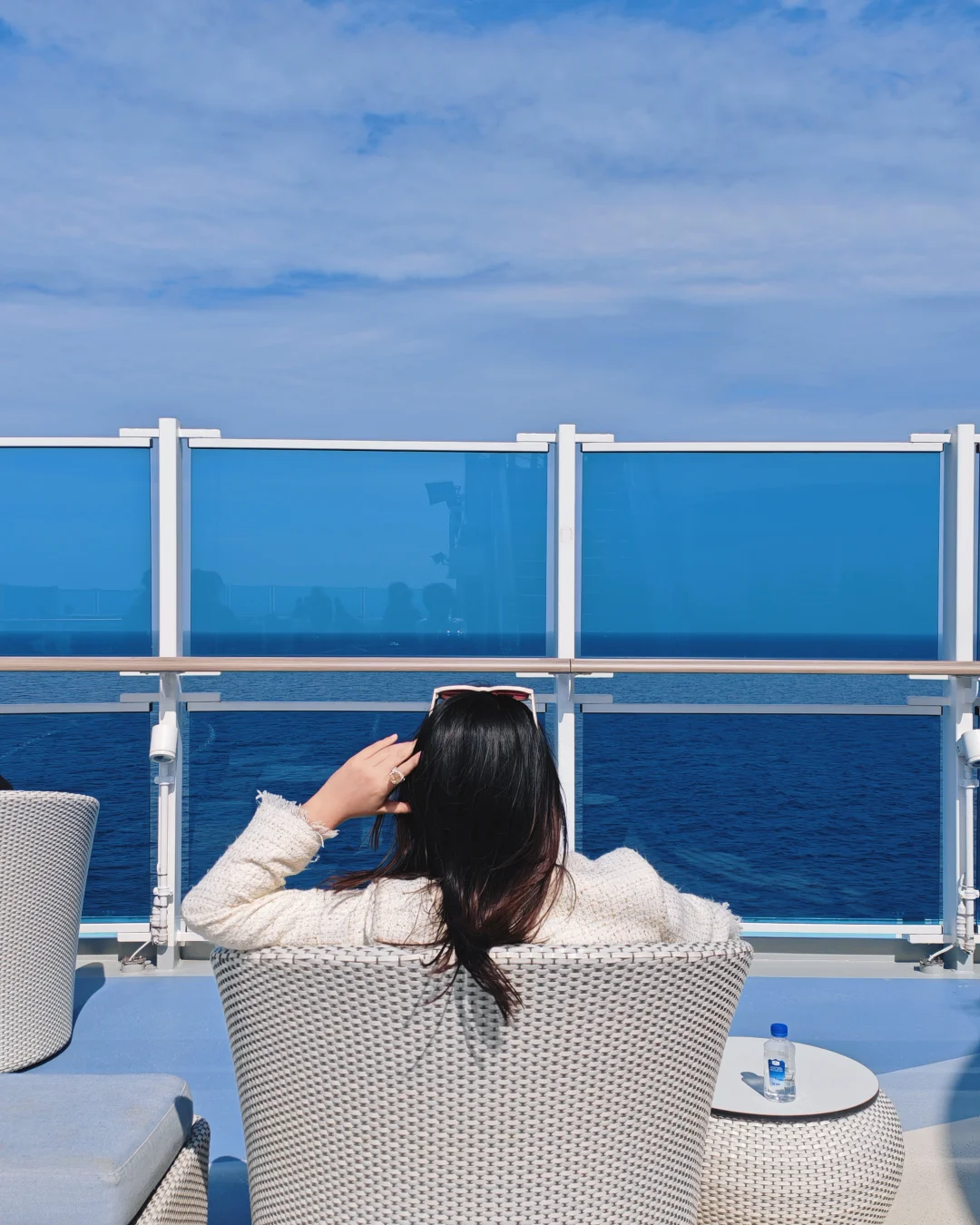 船慢慢开着,窗外只有海,一片接一片的蓝。太阳从海平面升起来,又从另一边落下去,中间那段漫长的白天,我什么都不想做。