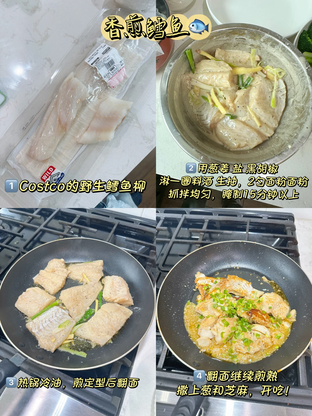 Costco的野生pacific鳕鱼,比较嫩,🐟的味道没那么重,胜在野生,轻轻煎一下就当是优质蛋白质啦