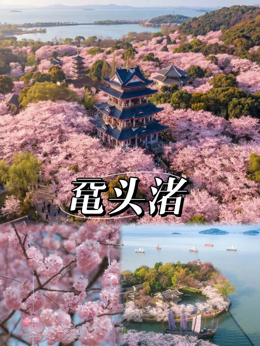 🌞上午:鼋头渚,从「充山大门」进,直奔水景苑看菖蒲花海,粉紫色花瀑像莫奈的画,团队分组拍“春日氛围感大片”超绝。乘游船游太湖仙岛,甲板上看樱花与太湖同框