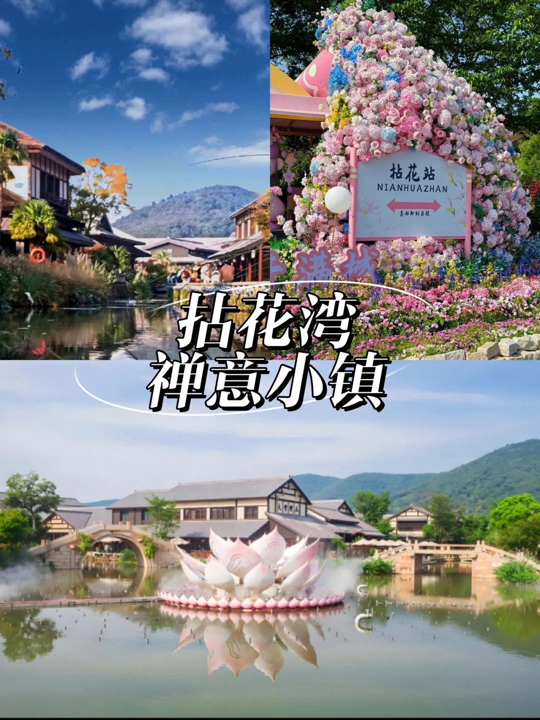 🌞下午:拈花湾,距鼋头渚约30分钟车程,闯入现实版“世外桃源”!漫步香月花街,看唐风宋韵的建筑与樱花相映,团队分组打卡“花开五叶”广场