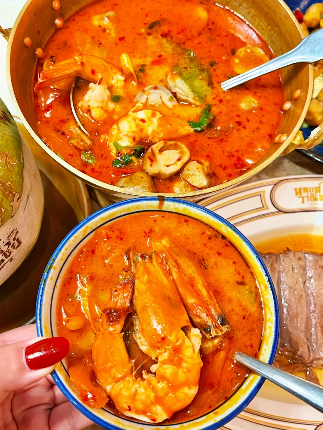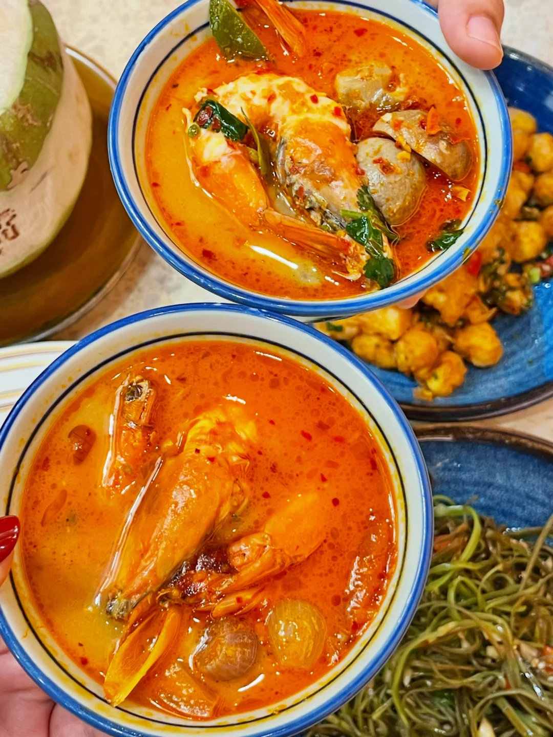 谁懂这一口冬阴功汤的含金量!酸辣开胃 里面的大虾🍤个头超大 肉质弹牙 本酸辣口星人真的爱了!