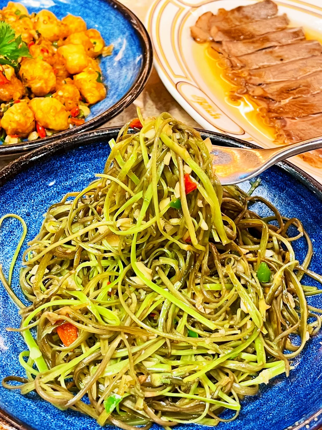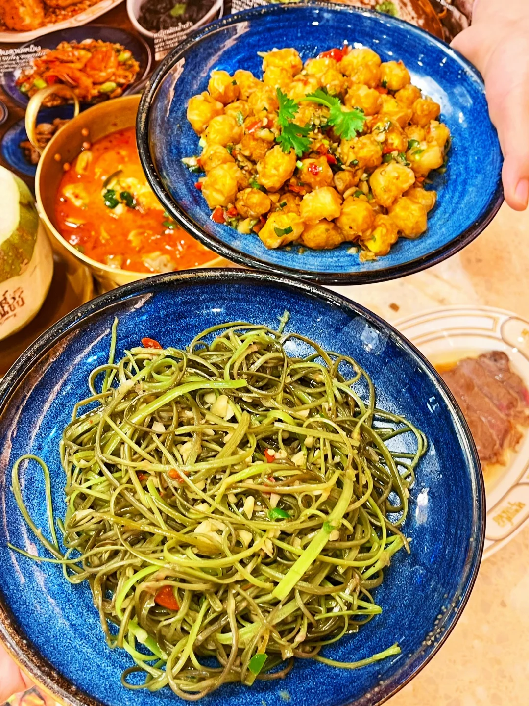 第一次在曼谷吃到切成丝的空心菜!居然比传统做法还好吃!现炒的锅气十足 脆脆的超爽口!