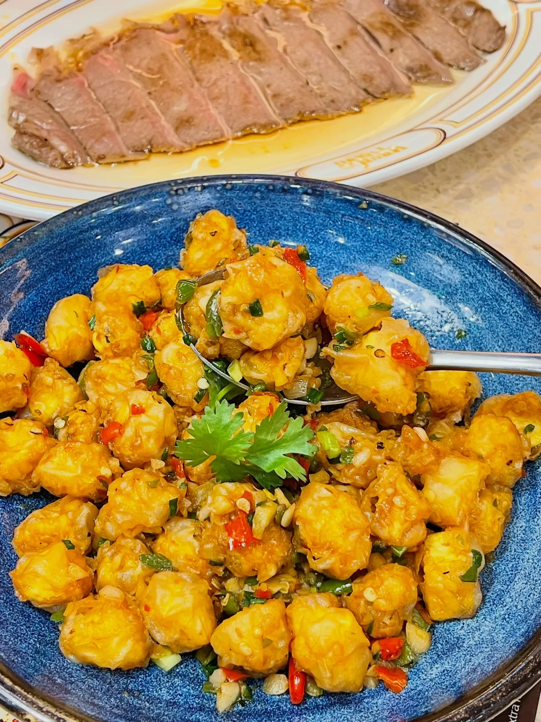 我愿称之为炸豆腐天花板 两面炸制金黄 一口下去还爆汁 蒜香爆炒搭配辣椒真的太惊艳了!
