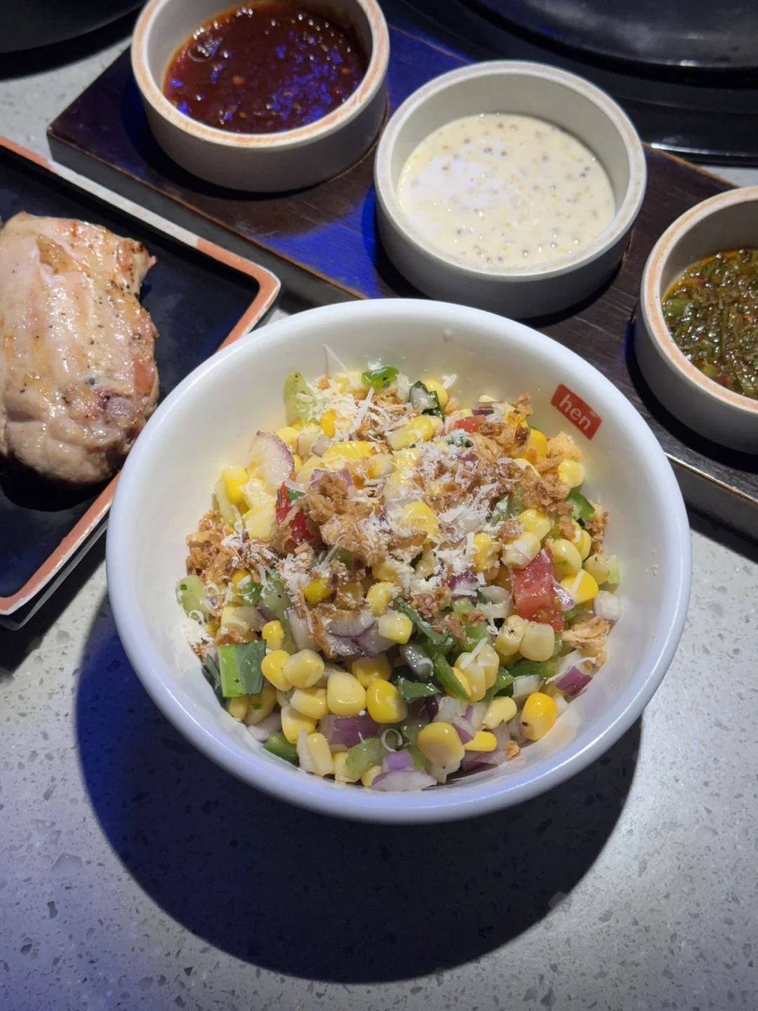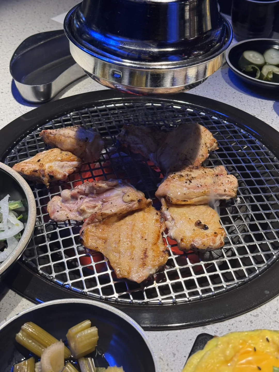 别只知道去狎鸥亭喝咖啡了 藏在清洞的鸡肉料理专门店 一套下来直接扶墙走‼️ 烤鸡肉外焦里嫩,配着玉米沙拉超解腻🌽 蔬菜拼盘清爽又丰富 芝士鸡肉焗饭拉丝拉到手软 蒸蛋羹嫩到勺子都接不住🥄 再配两杯Highball 这顿真的太满足了✨ 📍서울 강남구 압구정로79길 25 2