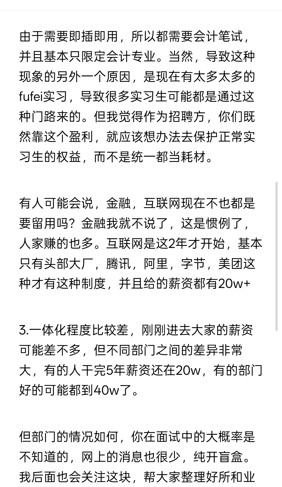 有人可能会说,金融,互联网现在不也都是要留用吗?金融我就不说了,这是惯例了,人家赚的也多。互联网是这2年才开始,基本只有头部大厂,腾讯,阿里,字节,美团这种才有这种制度,并且给的薪资都有20w+