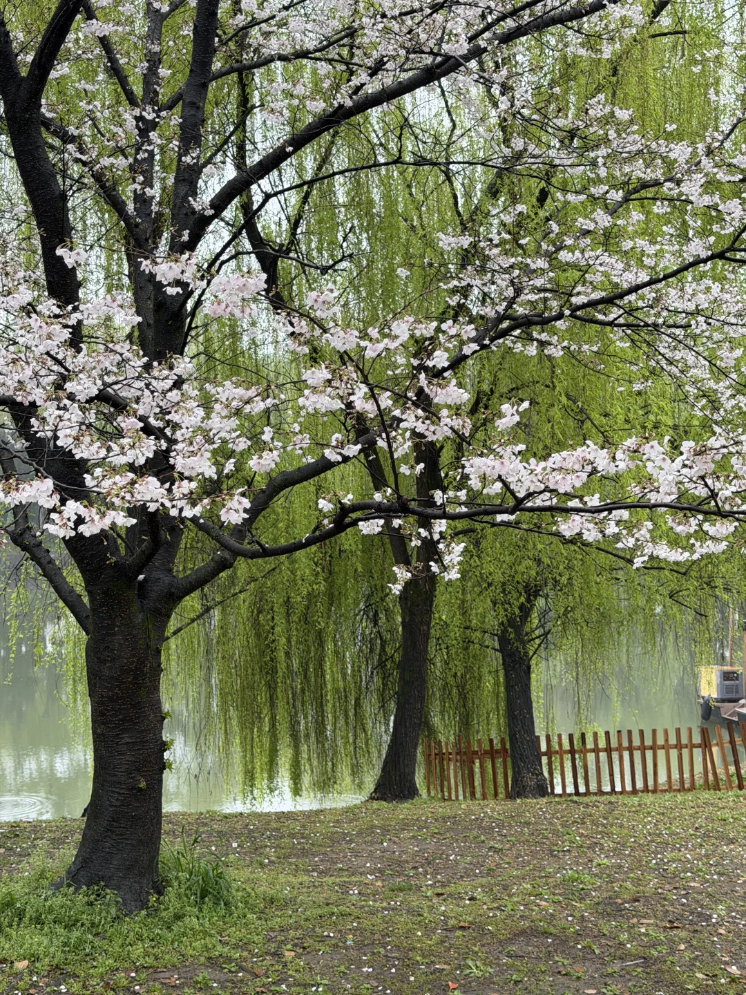 3️⃣把手机或相机放低,镜头向上,以天空为背景,既能拍到繁盛的樱花,又能巧妙地避开人群。
