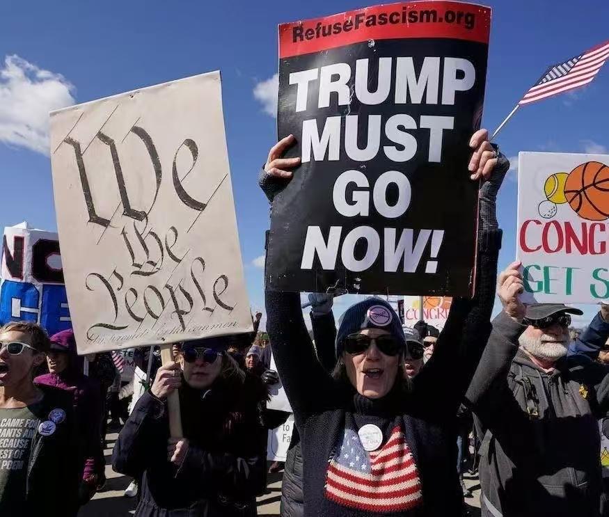 美国 900 万人走上街头, 高呼“不要国王”, 反对移民政策和对伊打击。 美以