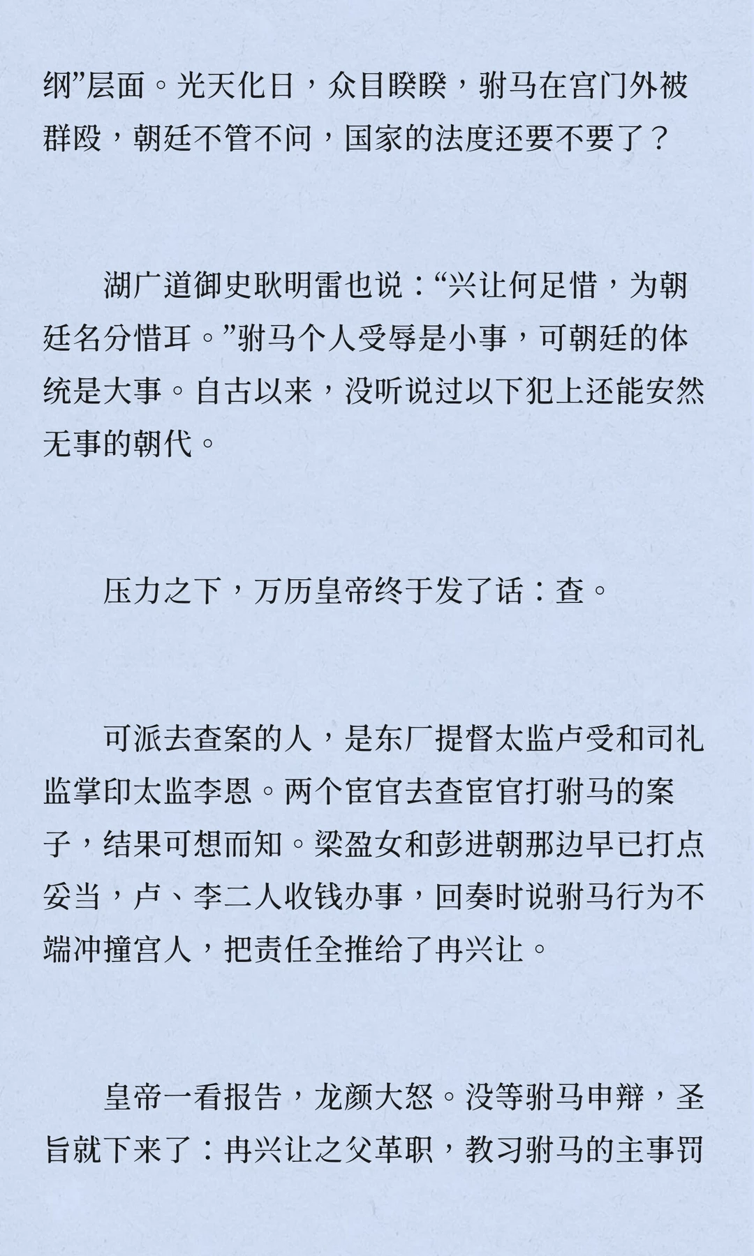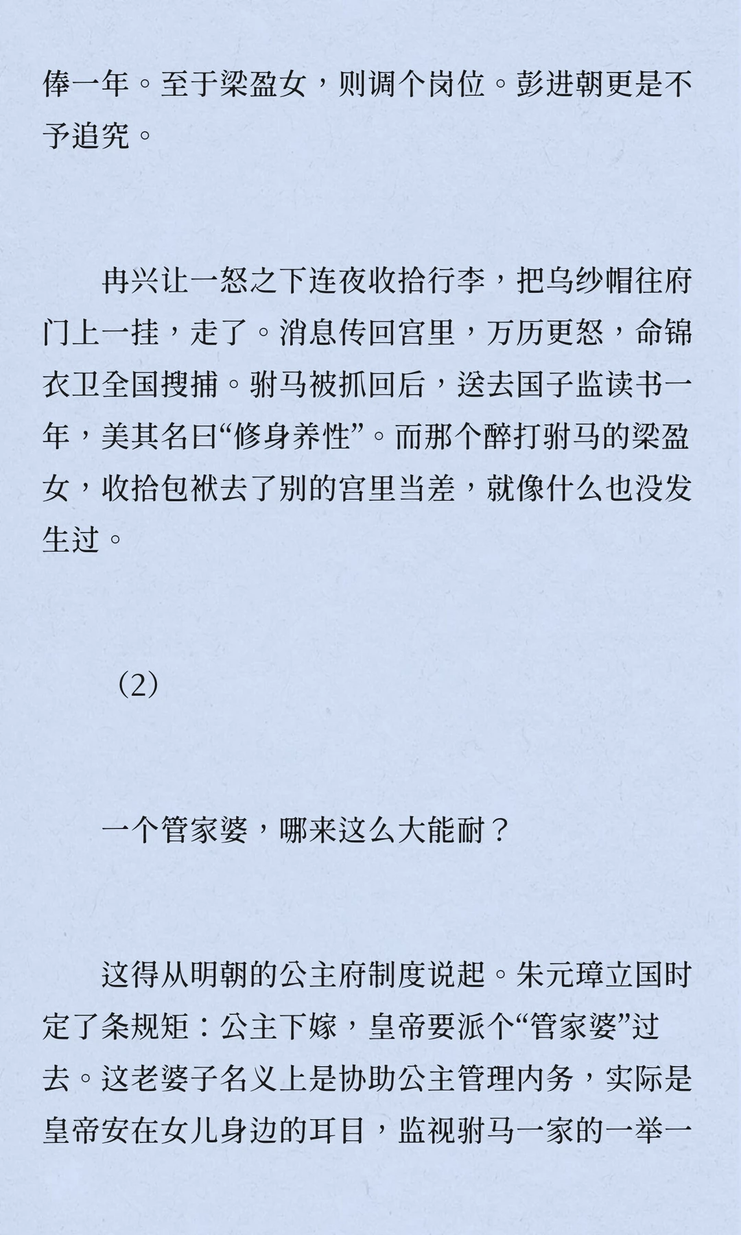 万历四十年,寿宁公主府驸马冉兴让被管家婆梁盈女打,引发宫廷风波。皇帝偏听宦官,处罚驸马,大臣不满,认为损害纲常。此案折射明朝宦官专权与皇帝失政,最终导致朝政混乱。