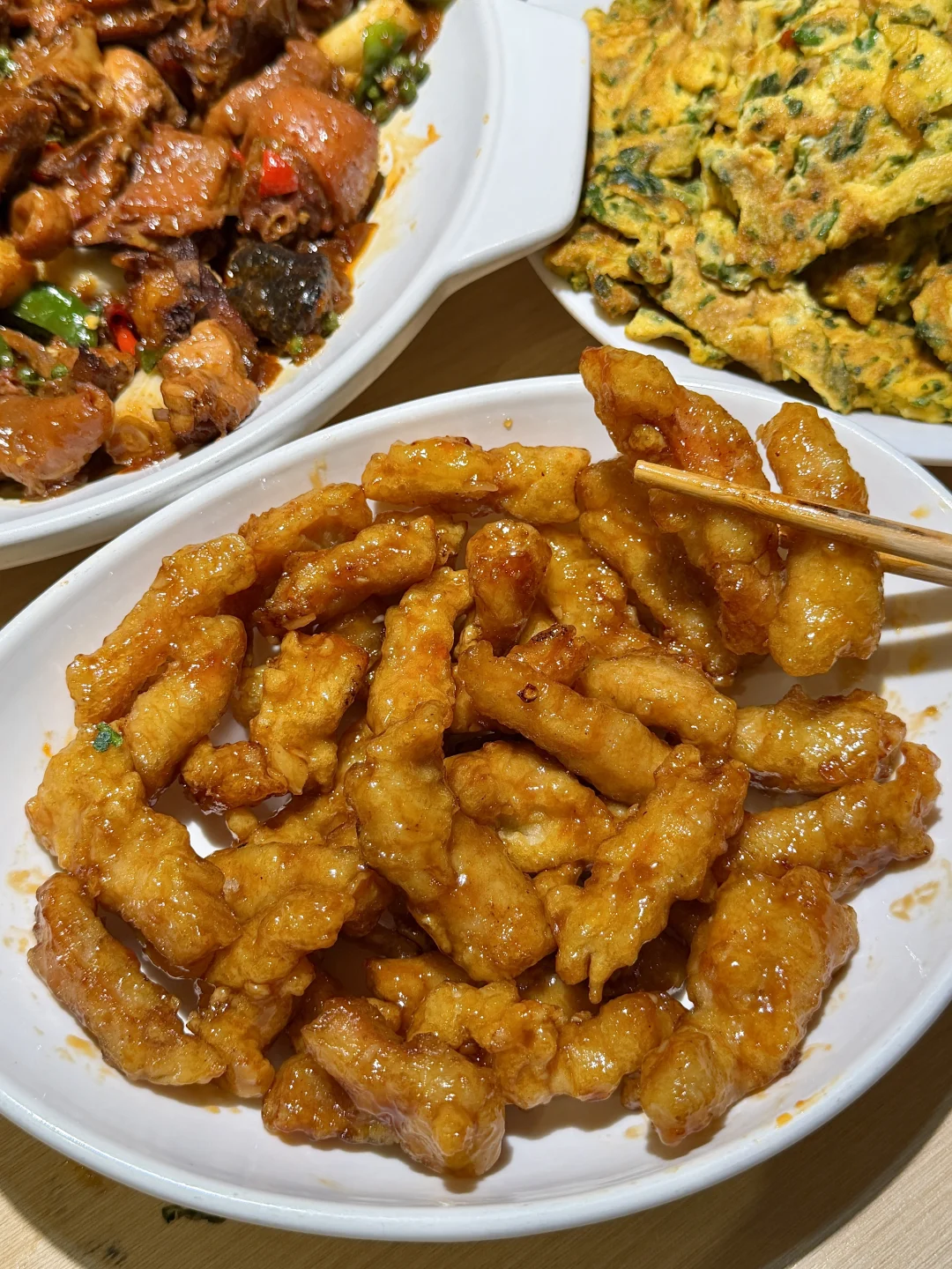 路过万象城一定一定要去吃的!! 跟着青岛网友推荐去的🥹真的好好吃啊!芝麻鸡太香了,刚端上来冒热气香晕了~还有疙瘩汤……好多特色青岛菜每个都吼吼次~ ✔️辣炒年糕鸡爪,煮的软烂入味,里面还有年糕加上鸡爪吸满汤汁ju下饭!! ✔️咸蛋黄海苔鸡翅,好喜欢上面的咸蛋黄沙沙的口感搭配鸡翅外焦里嫩香迷糊了😭 ✔️还有主打的疙瘩汤,冬天吃这个热乎乎的,直接炫了两大碗!!! ✔️临沂炒鸡,还加了泡面和手工面!!巨巨巨香!一吃一个不吱声! 记住这个店名:📍吕氏疙瘩汤