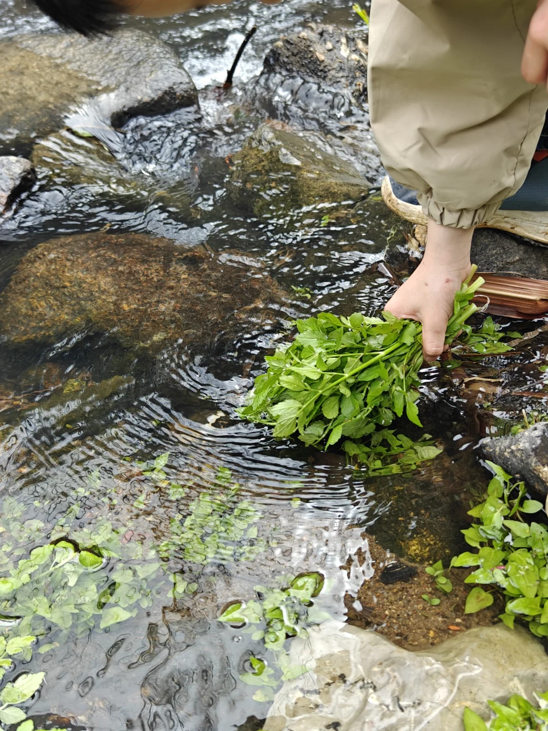 梅岭月亮湾沿着小溪流一路往下都有野菜,水边有野芹菜,路边有鱼腥草和艾叶! 春天就要上春山,大自然遛娃推荐打野!记得穿好套鞋,还可以带上渔网,这样玩得更有趣哟~