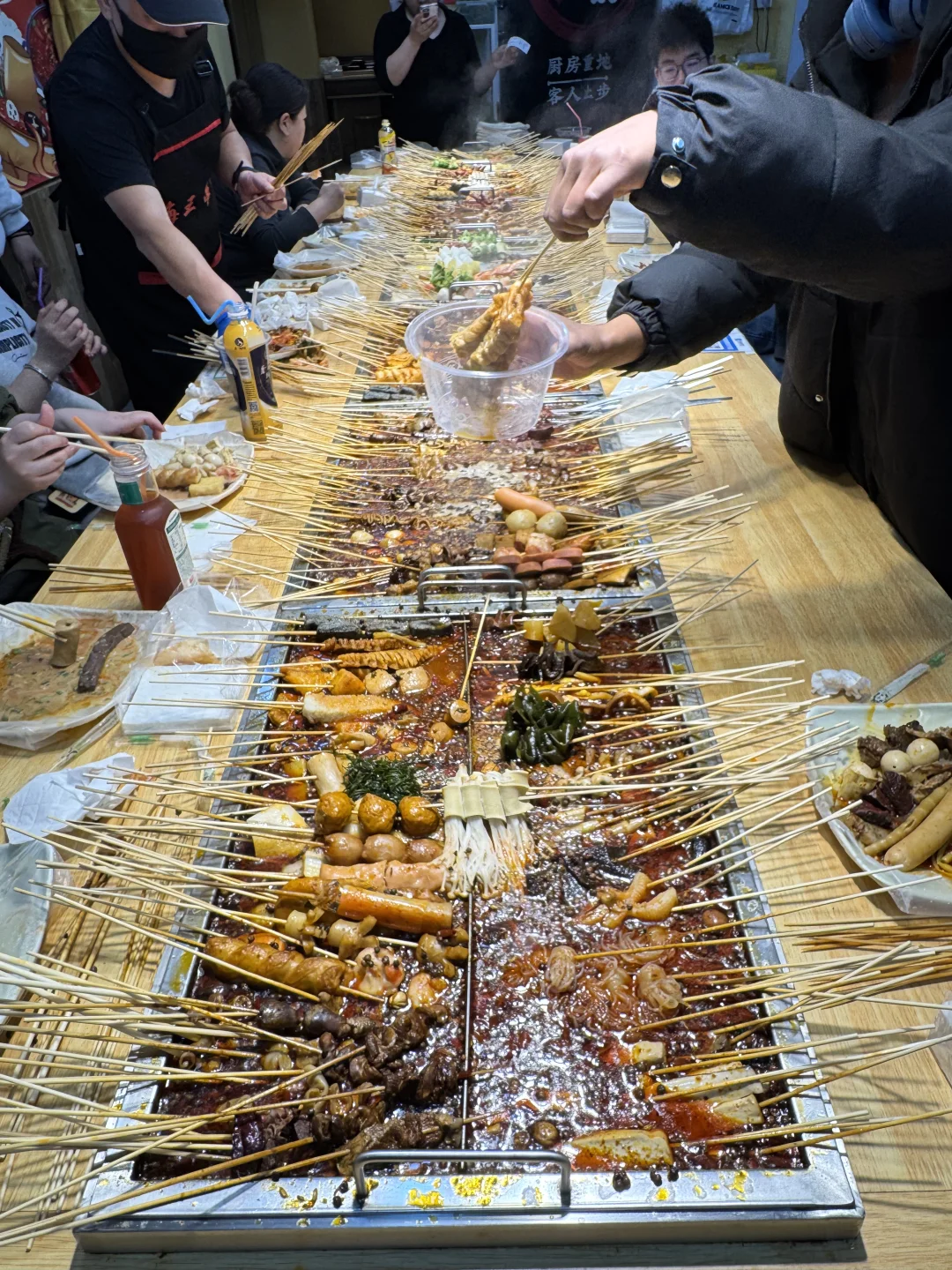 围在桌前吃板前串串~