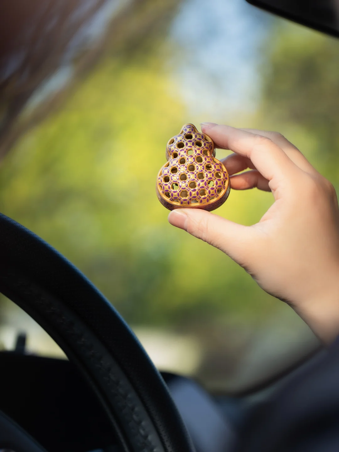 把它挂在衣柜里。葫芦的造型,粉紫的颜色,福禄的寓意。香片在里头慢慢释放,衣物便一天天染上那缕淡淡的清韵。换季时打开衣柜,扑面而来的,是整个春天的气息。