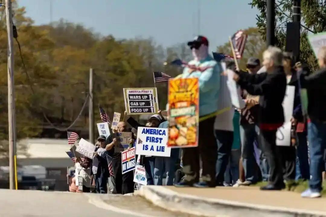 900万人上街,特朗普这下麻烦大了。 3月28号,美国全国闹翻天了。 50个州同时搞抗议,一共3100多场,900万人走上街头。 这次规模特别大,很可能是美国历史上最大的一次抗议。 900万人是什么概念?差不多相当于美国总人口的2.7%,相当于两个半纽约市的常住人口,从东海岸的纽约到西海岸的洛杉矶,从北部的明尼苏达到南部的路易斯安那,没有一个州能置身事外,街头到处都是抗议的人群,连一些平时偏向保守的乡村地区,都有民众自发走上街头。 当天的纽约,抗议活动覆盖了五个行政区,下午两点多,曼哈顿第七大道上,抗议者手举着“不要国王”“不要战争”的标语,高呼口号,游行队伍绵延超过10个街区,一眼望不到头。 纽约市不得不出动上千警力维持秩序,即便如此,现场的气氛依然十分热烈,每个人脸上都带着不满和焦虑。 首都华盛顿的场面同样震撼,上千名示威者组成的队伍穿过阿灵顿纪念大桥,聚集在林肯纪念堂前,横幅上“为民主而战”“取缔移民与海关执法局”的字样格外醒目。 白宫栅栏外,也围满了抗议民众,一位50多岁的民众愤怒地说,特朗普正在把美国重新拖入中东的战争泥潭,我们只会无路可退。 而这次抗议的主会场,设在了明尼苏达州的圣保罗市,这里也是导火索之一——今年1月,美国联邦移民局在这里大规模搜捕非法移民,还导致两名美国人丧生。 尽管当天天气寒冷,但依然有10万人聚集在这里,州长、联邦参议员等政界人士也登台讲话,批评特朗普的政策,呼吁停止战争、善待移民。 大家可能会问,这么多人冒着风险上街,到底图什么?其实核心诉求很简单,全是特朗普政府的各项政策惹的祸。 最让民众不满的,一是移民政策,特朗普政府的强硬移民执法,不仅牵连了无辜民众,还引发了一系列人道主义问题;二是对外政策,尤其是在伊朗问题上的强硬立场,让民众担心美国会再次卷入不必要的战争。 除此之外,经济问题也是压垮民众的最后一根稻草。 根据福克斯新闻的民调,75%的受访者认为当前美国经济形势很差,近半数人表示个人财务状况在恶化,86%的人担心通货膨胀和高物价,而特朗普处理经济问题的支持率,已经跌到了34%的新低,这也是他执政以来的最低水平。 更麻烦的是,这次抗议和之前不一样,不再是只有民主党支持者和大城市居民参与。 根据组织方的数据,超过50%的抗议活动,发生在倾向共和党的州或两党势均力敌的地区,三分之二的参与者来自城市中心以外的乡村和郊区。 这意味着,特朗普的支持基础正在松动,连原本偏向他的保守派民众,也开始对他不满。 要知道,这已经是美国第三次爆发“不要国王”主题的全国性抗议,前两次分别在去年6月和10月,参与人数从500万涨到700万,而这次直接突破900万,抗议场次也比上次多了500场。 这说明民众的不满正在不断累积,已经从零星的抗议,变成了大规模的集体发声。 对特朗普来说,这无疑是雪上加霜。民调显示,他的整体不满意率已经达到59%,在独立选民中的不满意率更是高达75%,就连共和党支持者中,对他的满意率也下降了8个百分点。 更关键的是,中期选举临近,抗议活动很可能会激活更多原本不投票的选民,而这些选民,大多是特朗普的反对者。 当然,特朗普阵营也在试图反制,把这次抗议定性为“极端自由派的动员”,但这种说法显然站不住脚。 毕竟900万人,涵盖了各个阶层、各个地区,不可能都是“极端自由派”。说到底,民众的不满,本质上是对特朗普政策的失望,是对生活现状的焦虑。 现在的特朗普,麻烦确实不小。900万人的声音,不是轻易能忽视的,这场大规模抗议,不仅会影响他的执政声誉,更可能左右接下来的中期选举。 毕竟在美国,街头抗议从来都不只是情绪的宣泄,最终很可能会转化为投票箱里的力量,而特朗普能不能扛过这一关,还要看他接下来的应对。