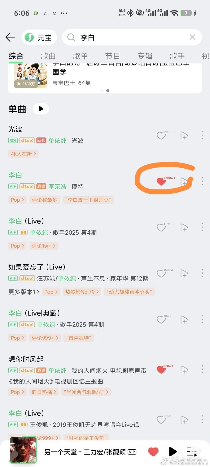 李荣浩版本的李白这首歌收藏2300万,单依纯版本连他的零头都不到。而且这首歌是李
