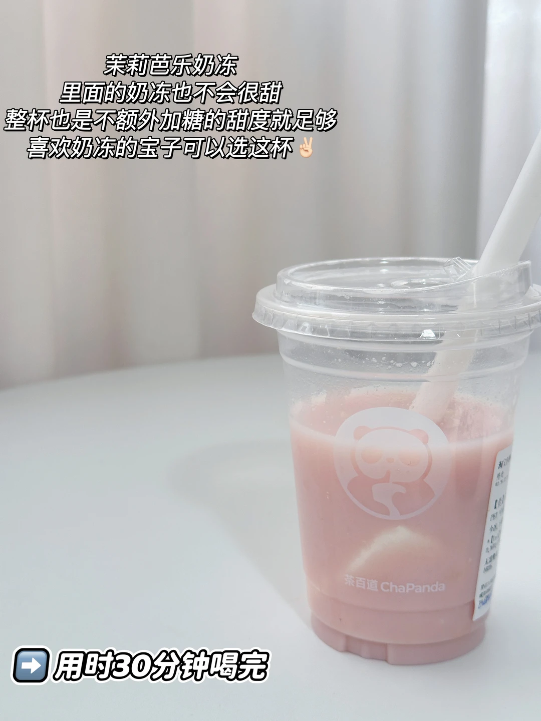 茉莉芭乐奶冻,里面的奶冻也不会很甜〰️整杯也是不额外加糖的甜度就足够,喜欢奶冻的宝子可以选这杯✌🏻