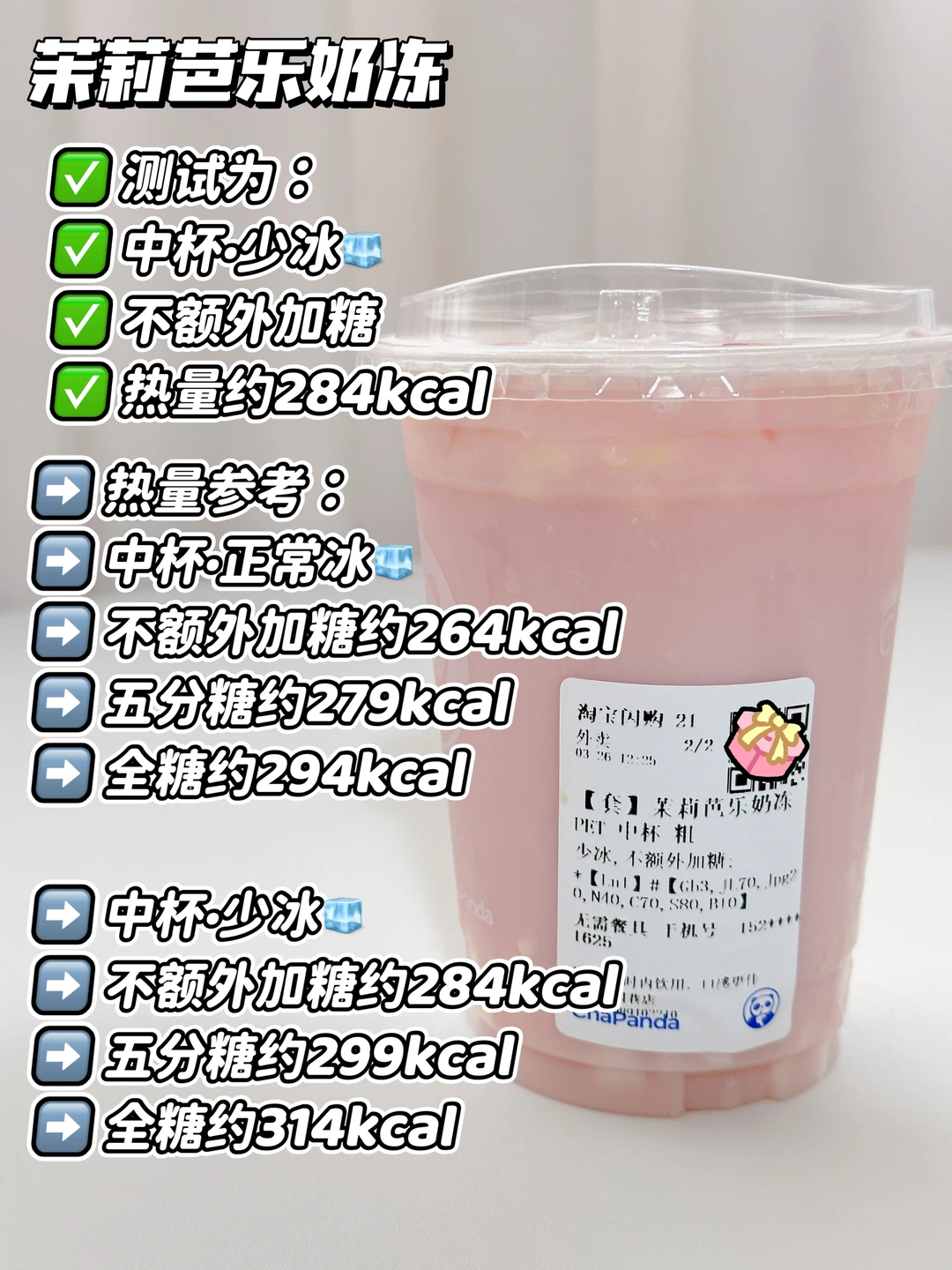 测试为:中杯·去冰🧊不额外加糖 约284kcal