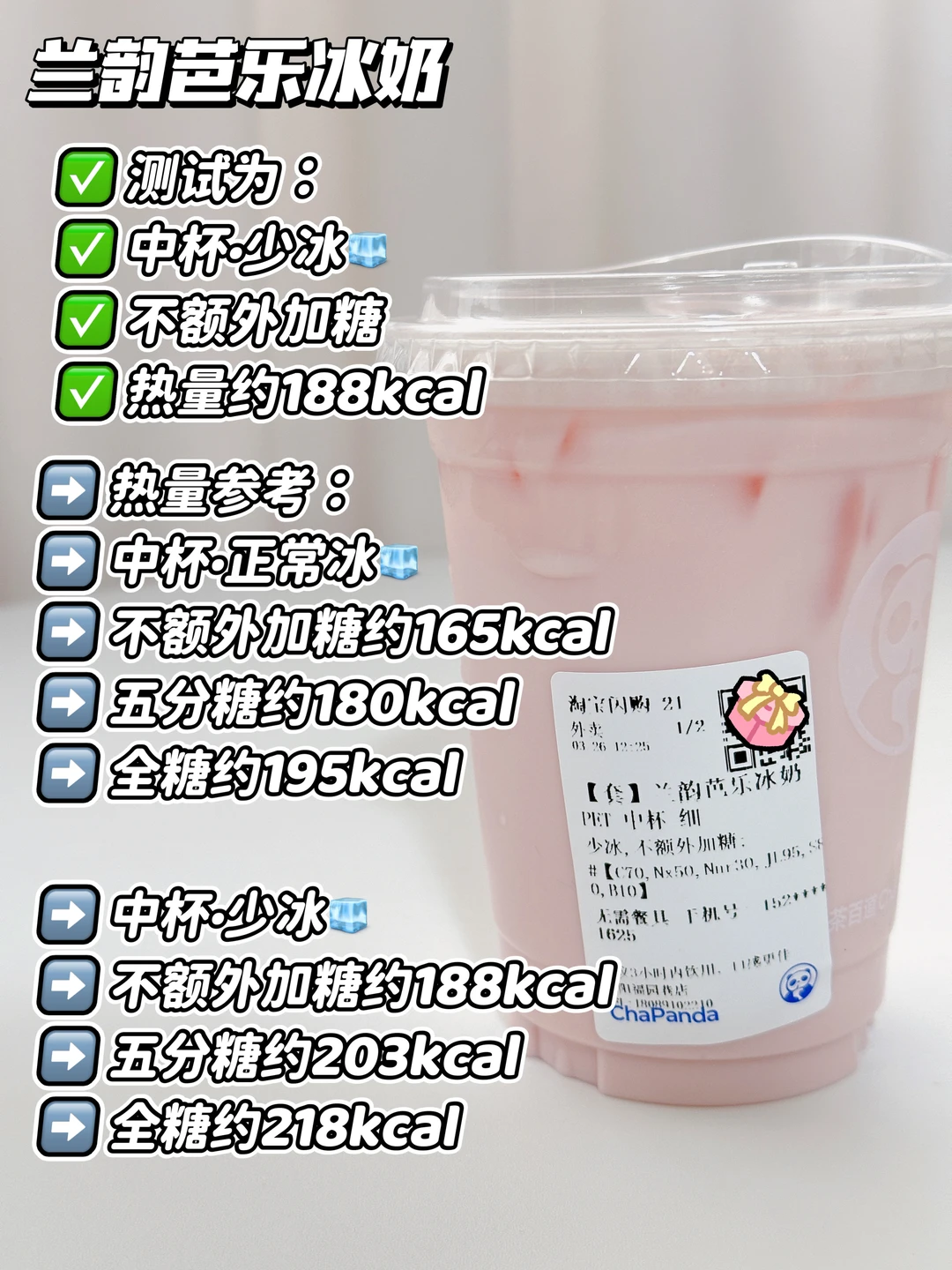 测试为:中杯·去冰🧊不额外加糖 约188kcal