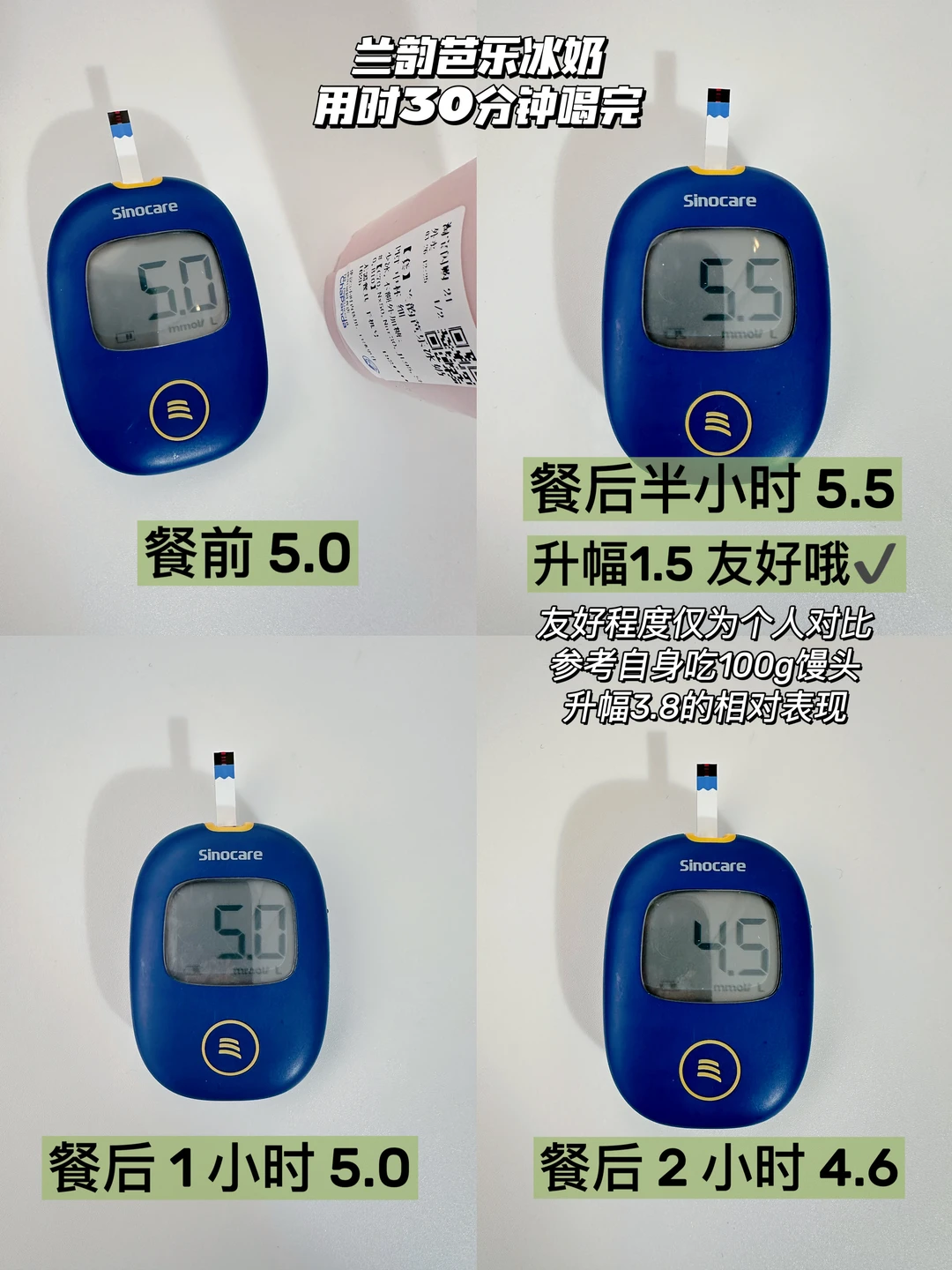 [私信R](友好程度仅为个人对比,参考自身吃100g馒头升幅3.8的相对表现)