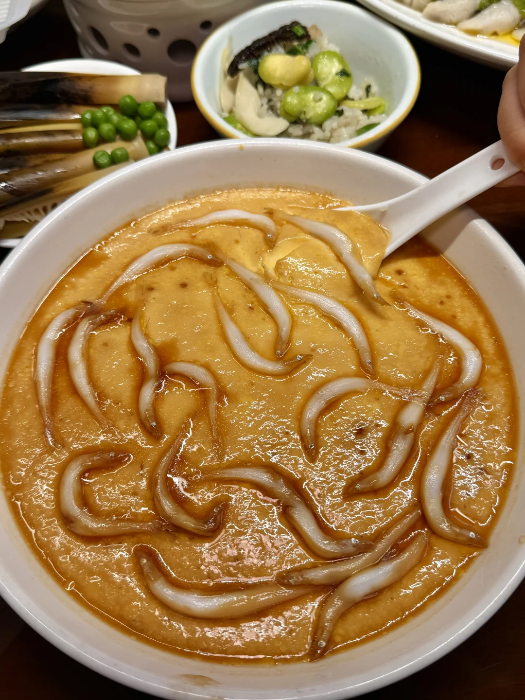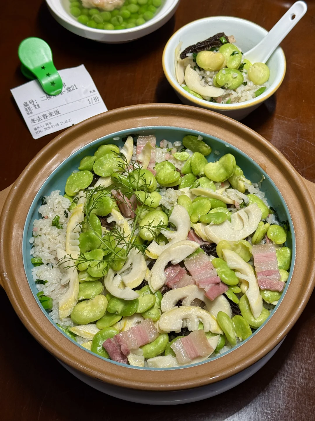 完全是江南地道春日风味的砂锅饭🍚春天才能吃到的鲜嫩蚕豆搭配春笋和腊肉,这一口太得劲了!!还有香脆的锅巴,太好吃了!