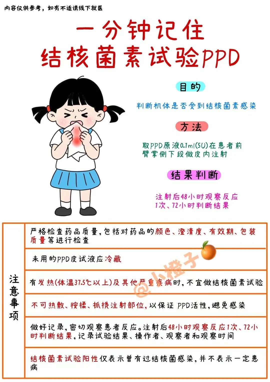 护士那些事儿 初级护师 主管护师 肺结核 肺结核皮试 PPD试验 我的健康生活 趣味知识科普 内科护理学 手绘笔记 🌟今日小橙子🍊分享的是PPD试验|考前急救🙋 ✨下期解锁更多考点[派对R]