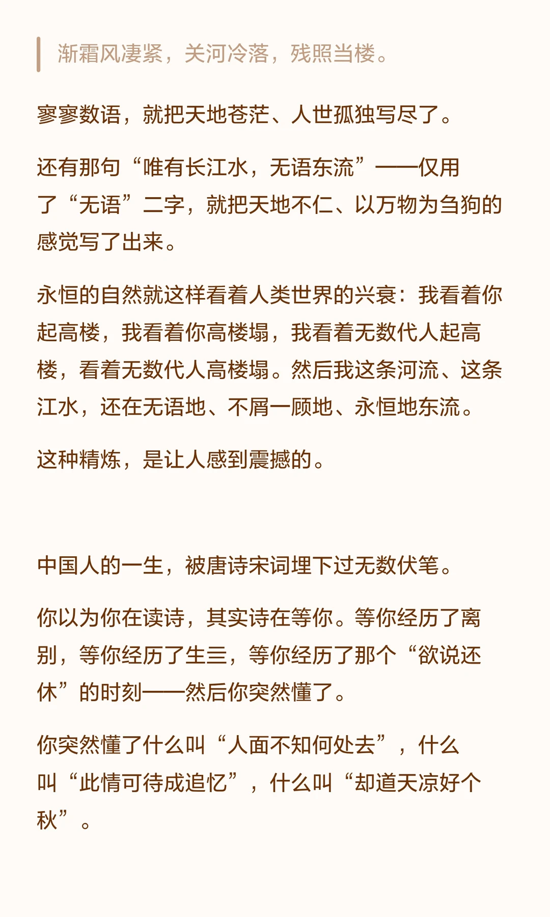 因为只有活着,才能继续读诗,继续懂得,继续被那些千年前的句子击中。