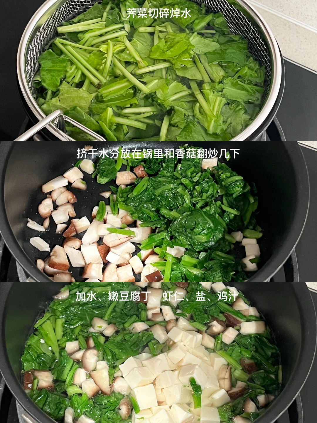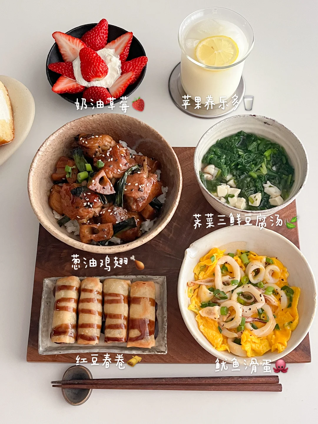 春天就要吃春菜呀 新鲜的荠菜也上市了 切半块嫩豆腐、香菇、虾仁 做一碗荠菜三鲜豆腐汤 出锅前淋上一点淀粉水 鲜美! 还做了很简单的葱油鸡翅 整个厨房都是葱油香 里面的藕块比鸡翅还好吃 下次试试葱烧莲藕~