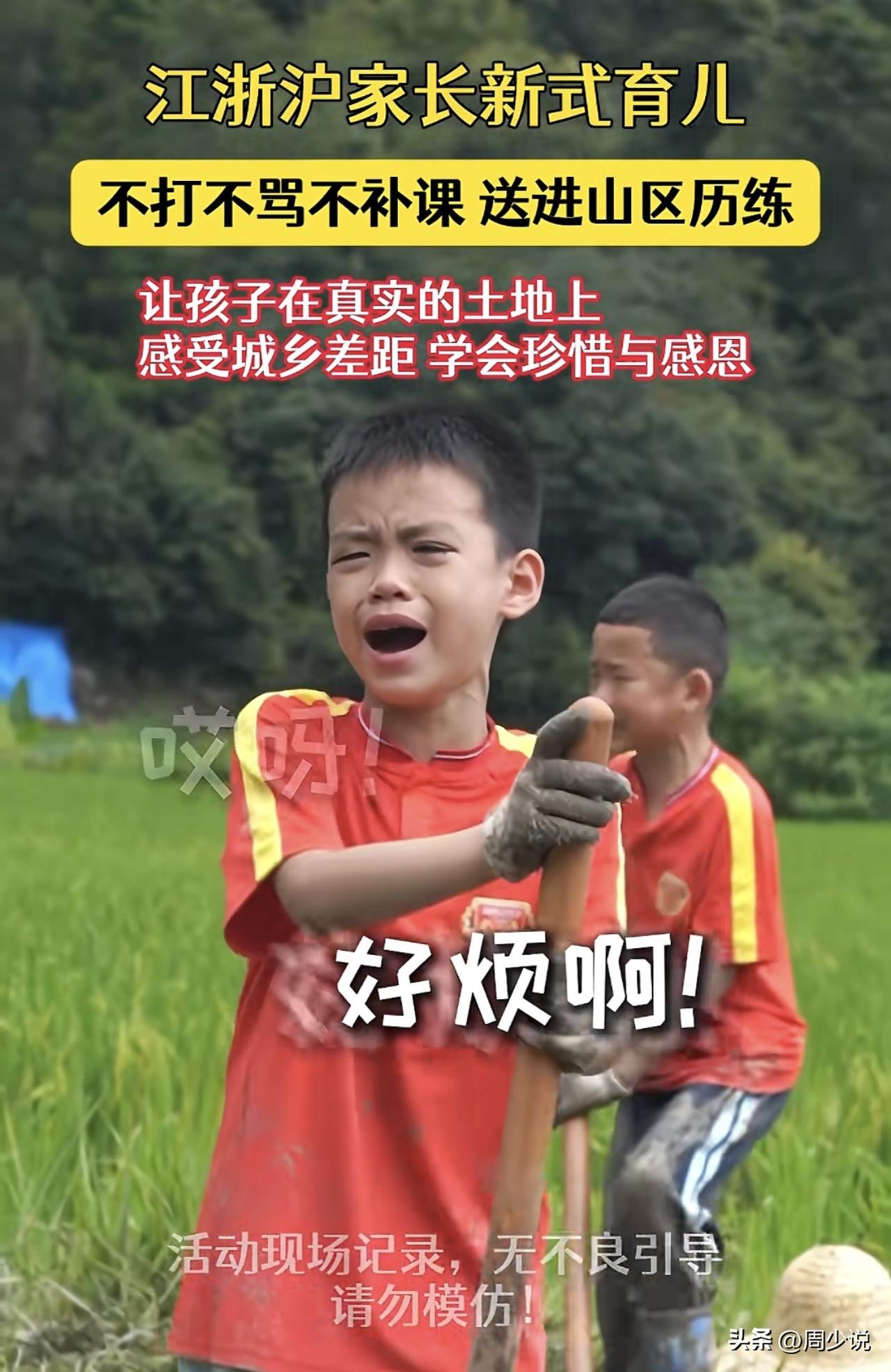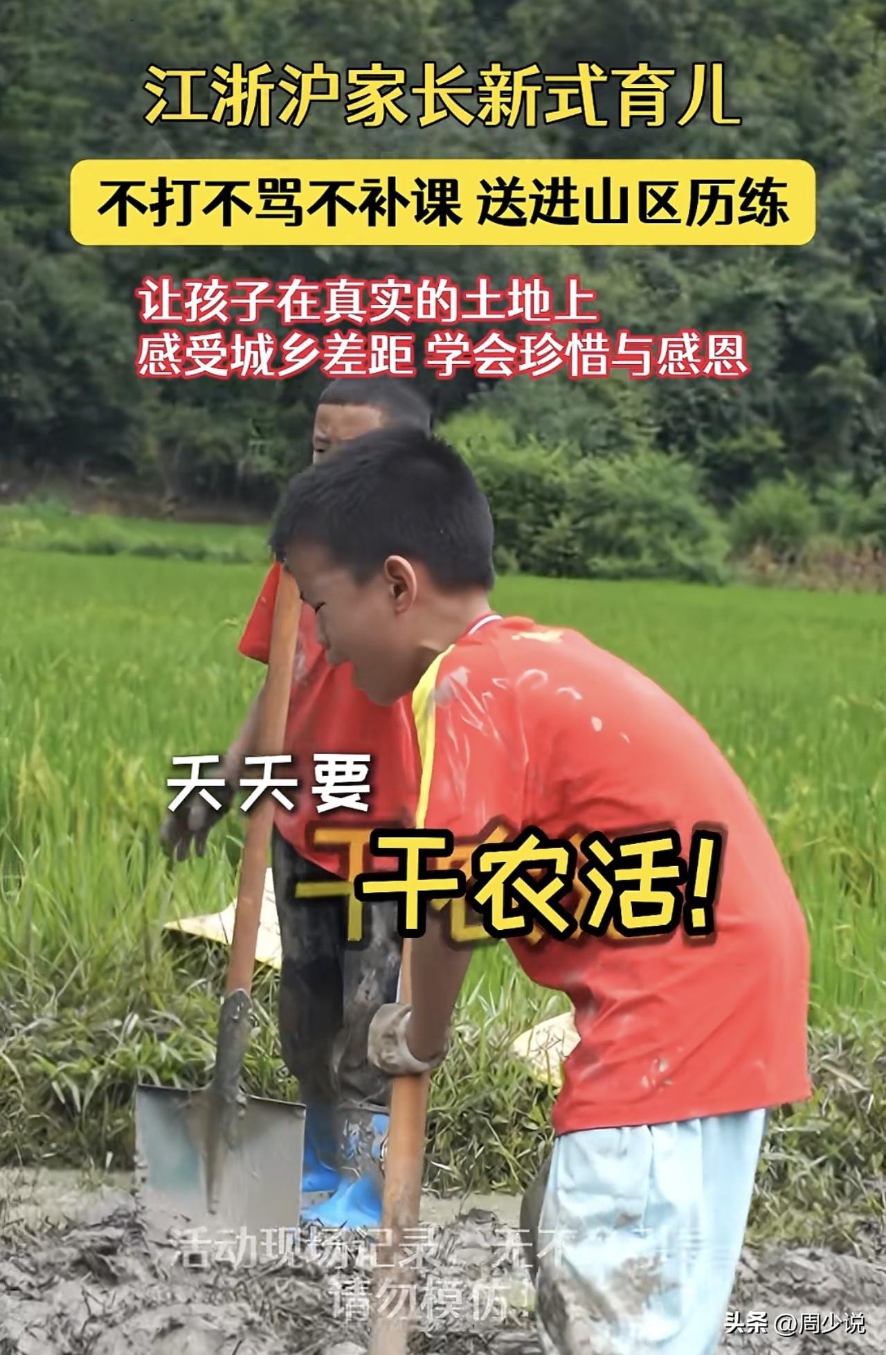 这就是江浙沪家长的新式育儿!不打不骂也不补课,而是直接送孩子进山区锻炼,让孩子在真实的土地上,去感受城乡差距,学会珍惜与感恩。面对这样的锻炼,不少孩子纷纷哭诉,觉得放暑假一点也不快乐,因为天天要干农活,特别的烦! 客观的说,这种教育确实可以,现在的孩子都是娇生惯养,没有吃过什么苦,放假送进农村,让孩子亲自体验干农活,比任何说教都管用……#周少说教育# #寻美三湘# #寻美湖南#