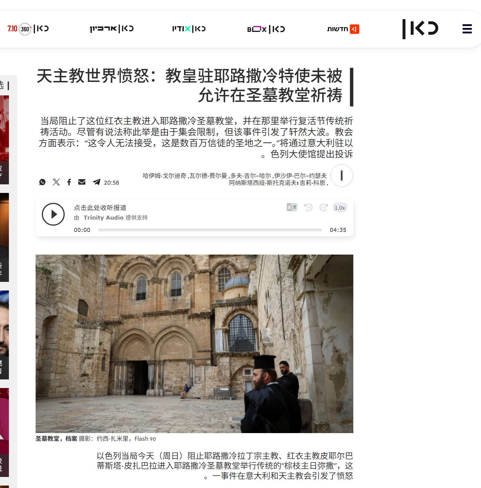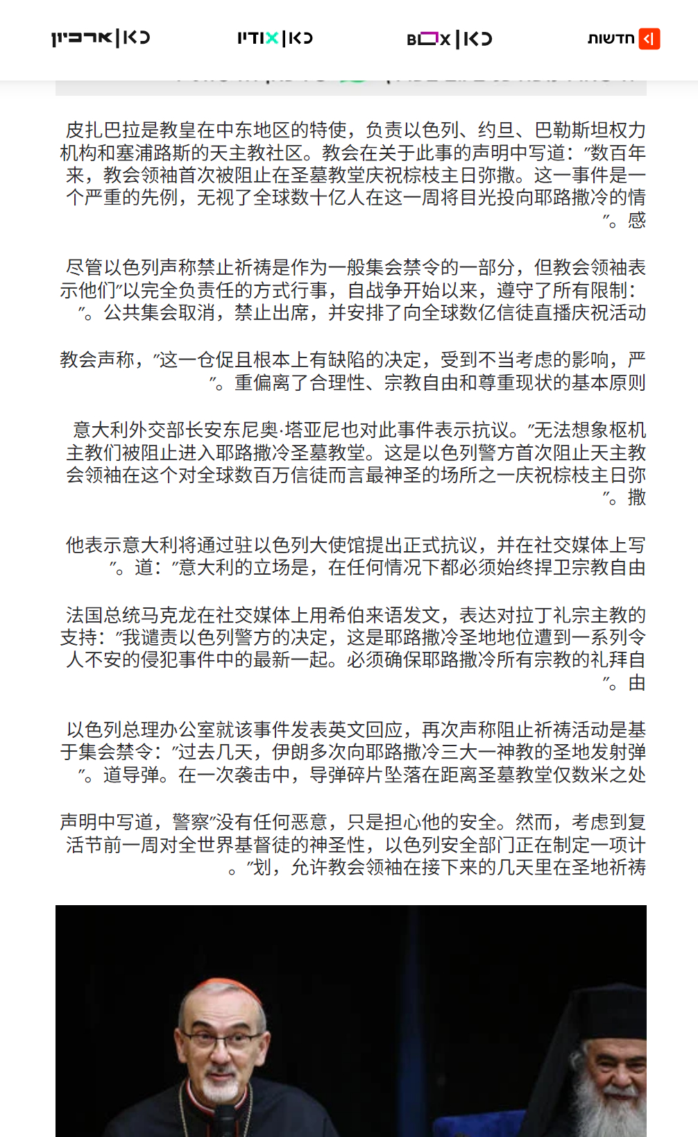 🔻天主教世界震怒:教皇驻耶路撒冷特使、耶路撒冷拉丁礼宗主教、红衣主教皮尔巴蒂斯