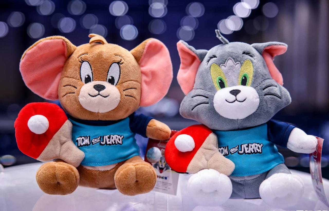 汤姆和杰瑞垄断了2026澳门世界杯赛场的角角落落[笑哭], 2026年澳门乒乓球世界杯场馆随处可见动画片里走出来的汤姆和杰瑞,有完全复制逼真的,还有胖了一圈的汤姆和杰瑞小玩偶,估计这玩偶要送给领奖台上的选手了。 澳门世界杯主办方和《猫和老鼠》所有者达成了合作,“乒乓猫鼠,追赶快乐”成为了这届世界杯的主题。 主办方也太会整活儿了,把选手们的童年回忆搬进了赛场,连汤姆都来现场“观战”了,感觉整个场馆都充满了快乐[笑哭]。