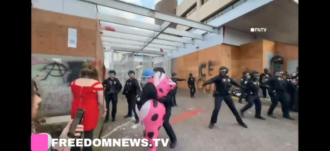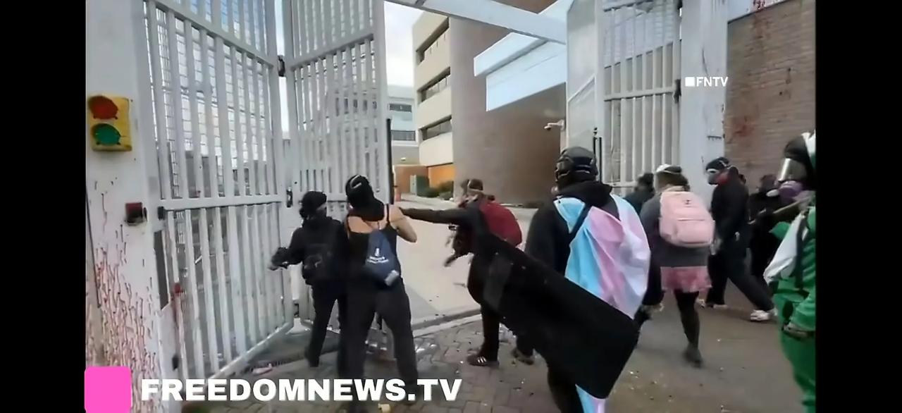 美国俄勒冈州波特兰市的一些抗议者冲击当地移民拘留中心。最初撞开大门后,执法人员还比较克制,重新关上了大门。随后,抗议者再度撞开大门,这下子执法人员就不克制了,冲入抗议者中间,开始推搡。