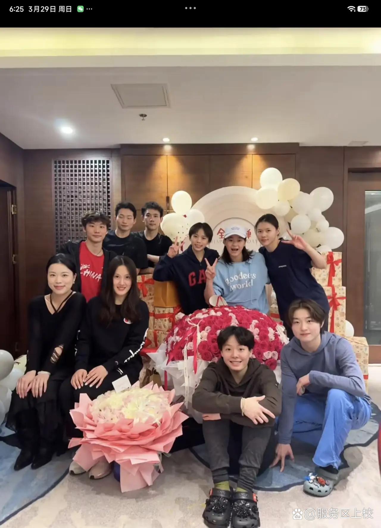 03月28日晚上,全红婵发视频祝自己生日快乐,好友陈芋汐,郑九源,陈艺文,林珊,蒋林静,司雅杰等一起庆祝全红婵19岁生日,场面温馨又和谐,可以看出跳水队这个大家庭是团结友爱的,大家只在赛场上是对手,场赛外是一帮好姐妹,好兄弟 全红婵穿着蓝色卫衣,被队友位宠得像个小公主,这次陈芋汐罕见的出现在全红婵的视频,真正诠释了什么是神仙姐妹,这一刻具象化全红红婵写的文案也是简单粗暴: 我19岁啦!!!!!!!!!!!!!!!!!!! 短短几个字,后面更是配上19个感叹号,表达了庆祝自己19岁生日,更是对未来的向往和追求,但愿全红婵还能站在10米跳台参加比赛,生日快乐!