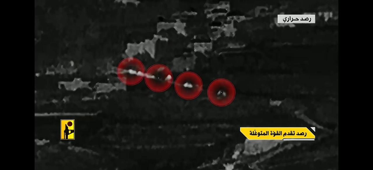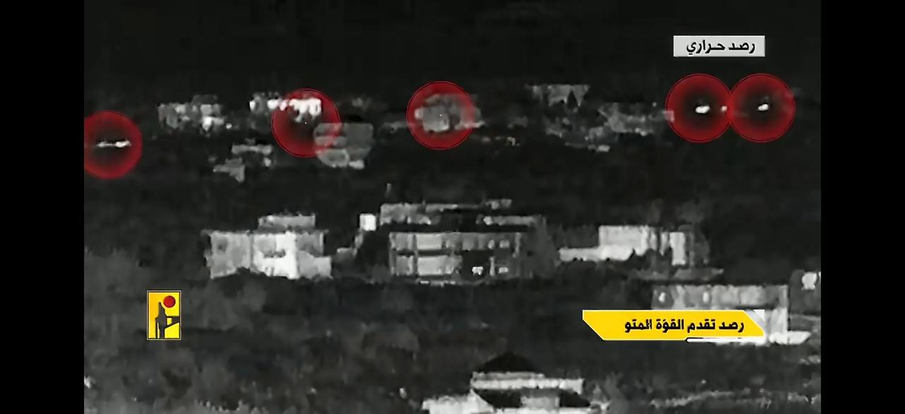 黎巴嫩真主党发布了3月26日晚上在坎塔拉镇对以军一支装甲部队实施伏击的视频。在伏击战中,黎巴嫩真主党综合使用反坦克导弹、火箭筒、火箭弹实施打击,共击中5-6辆以军坦克装甲车辆(其中一半完全烧毁)。 被打得狼狈不堪的以军发射了大量烟雾弹来遮蔽战场,掩护撤退。而以军救援直升机则冒险接近战场降落,转运伤亡士兵。 从视频还可看出,黎巴嫩真主党的热成像侦察设备似乎具备AI跟踪识别功能,能够对目标自动进行跟踪和识别。