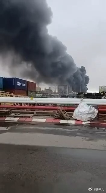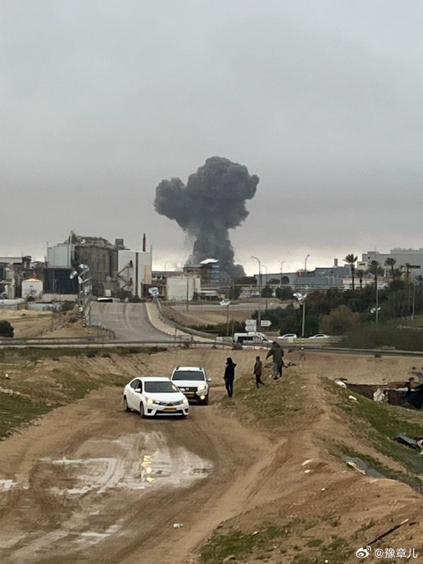 以色列贝尔谢巴以南的尼奥特霍瓦夫工业区遭到打击后冒出浓烟。