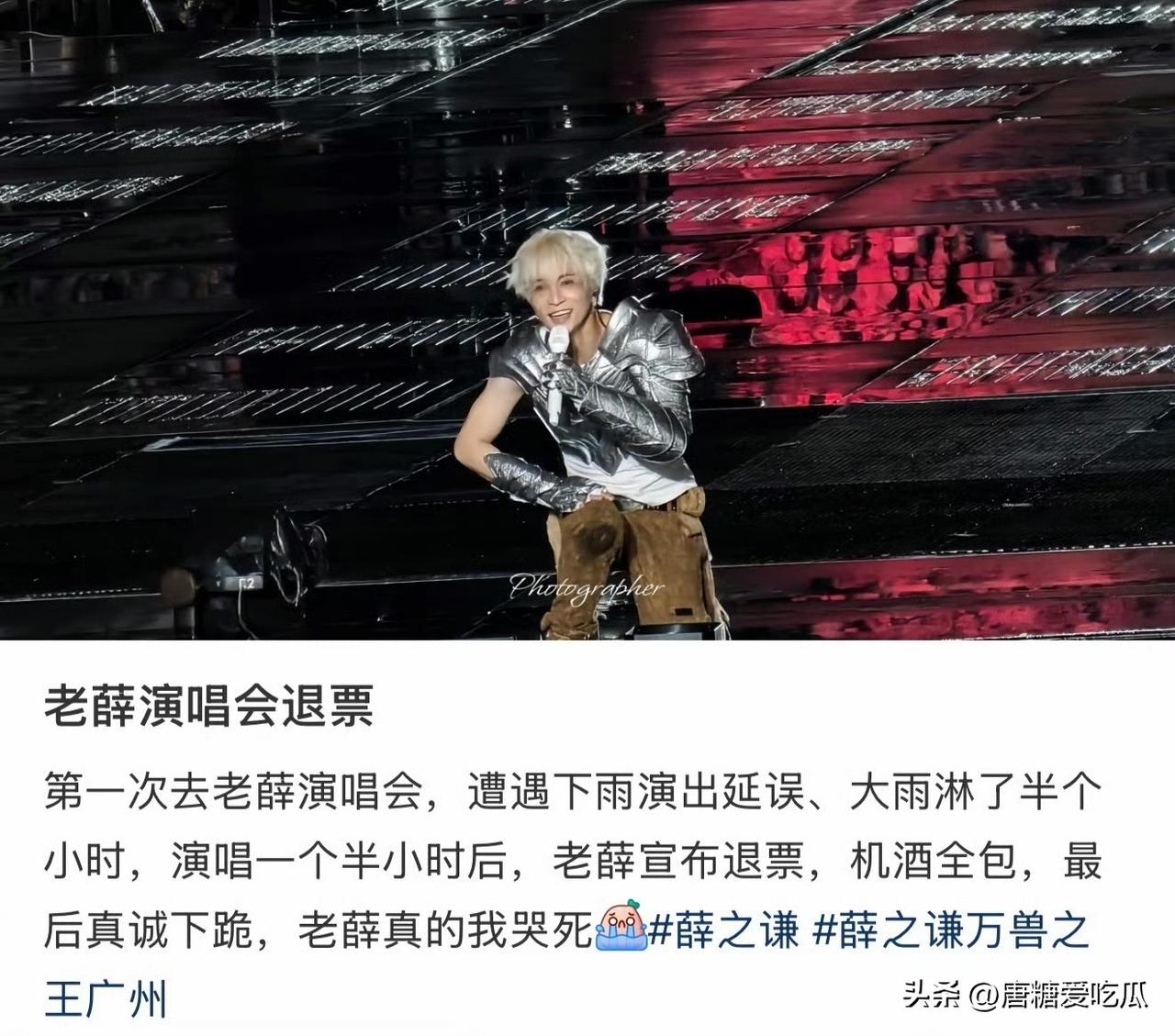 同样是道歉 薛之谦和单依纯反差太大了。 薛之谦因为暴雨,舞台效果严重受到影响,他主动停止了演唱会,并承担所有责任,报销粉丝酒店住宿和机票往返的费用,满满的诚意,原来这么多人爱他是有原因的。 反观单依纯,在演唱会里翻唱了一半的歌曲,哭得稀里哗啦,歌没有授权她强唱,虽然道歉了,但是不情不愿。 同样开演唱会,同样道歉,有的人诚意满满,有的人躲在背后。