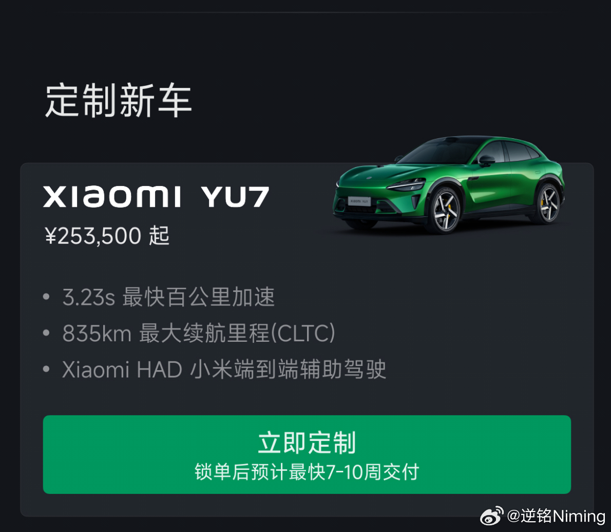 交付周期变短,主要原因还是相比YU7刚开售那会儿,产能已经非常充足了,按照YU7每月3-4w的产能,三个月交车周期意味着池子里依然有10万左右的订单,储备还是很宽裕的。