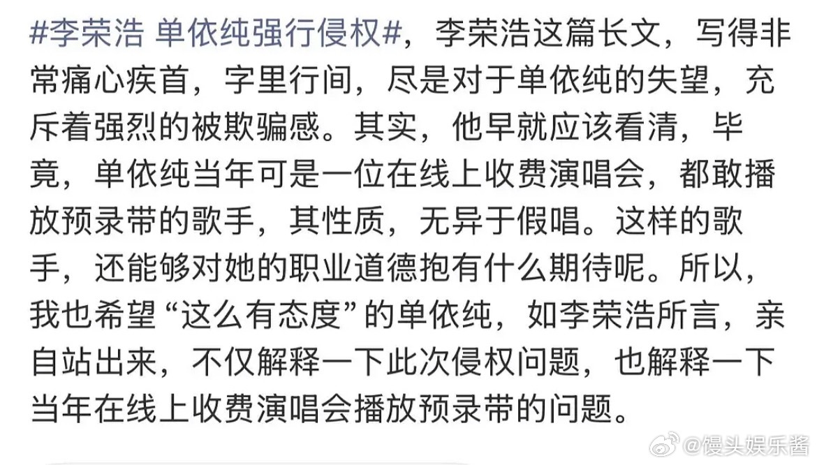 笑死,李荣浩说:希望你不要说你不知道,都是公司干的,真是精准预判单依纯演唱会总监