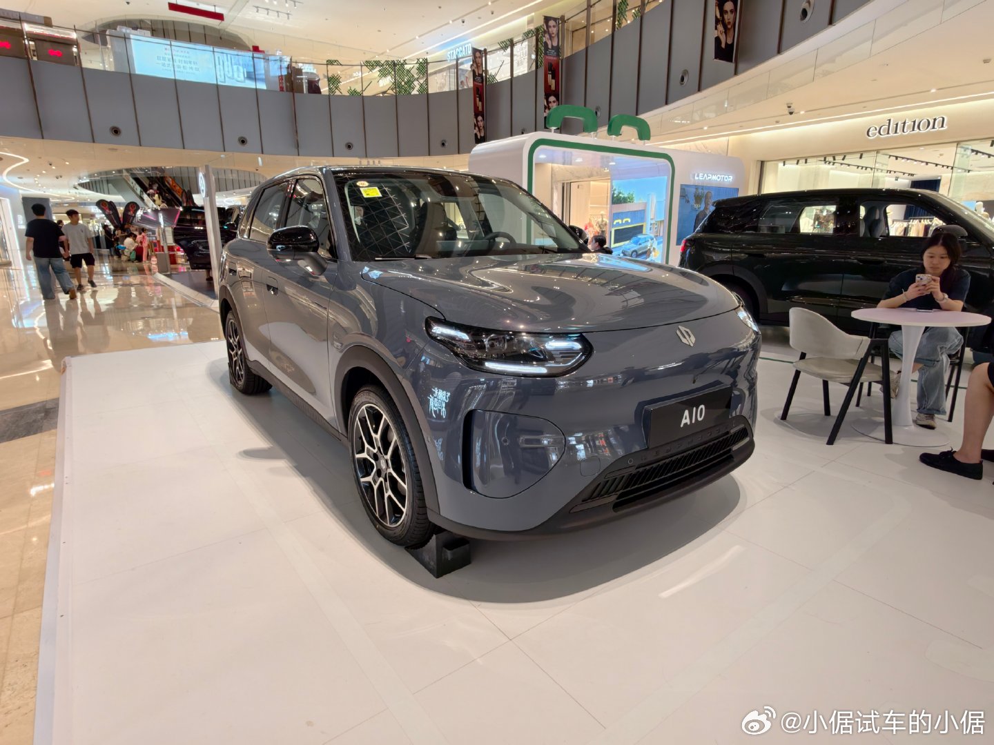 在商场见到零跑汽车的摊位,就摆两台A10新车。有一说一,几万块的小车,四个门板都