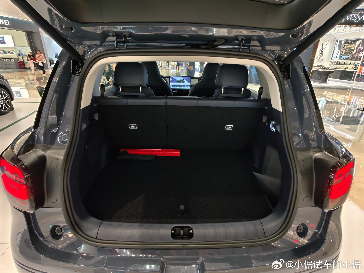 在商场见到零跑汽车的摊位,就摆两台A10新车。有一说一,几万块的小车,四个门板都有软质皮革包覆,这内饰氛围也不错,后排空间坐成年人没问题,后备箱底下还挖出这么大的空间,产品力确实挑不出什么大问题。