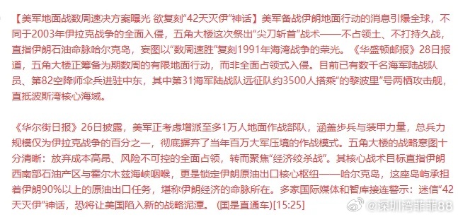 冲突升级!股民又要买单了!之前市场预期周末有和谈,现在又要派地面部队,这种闪电战,变成持久战。