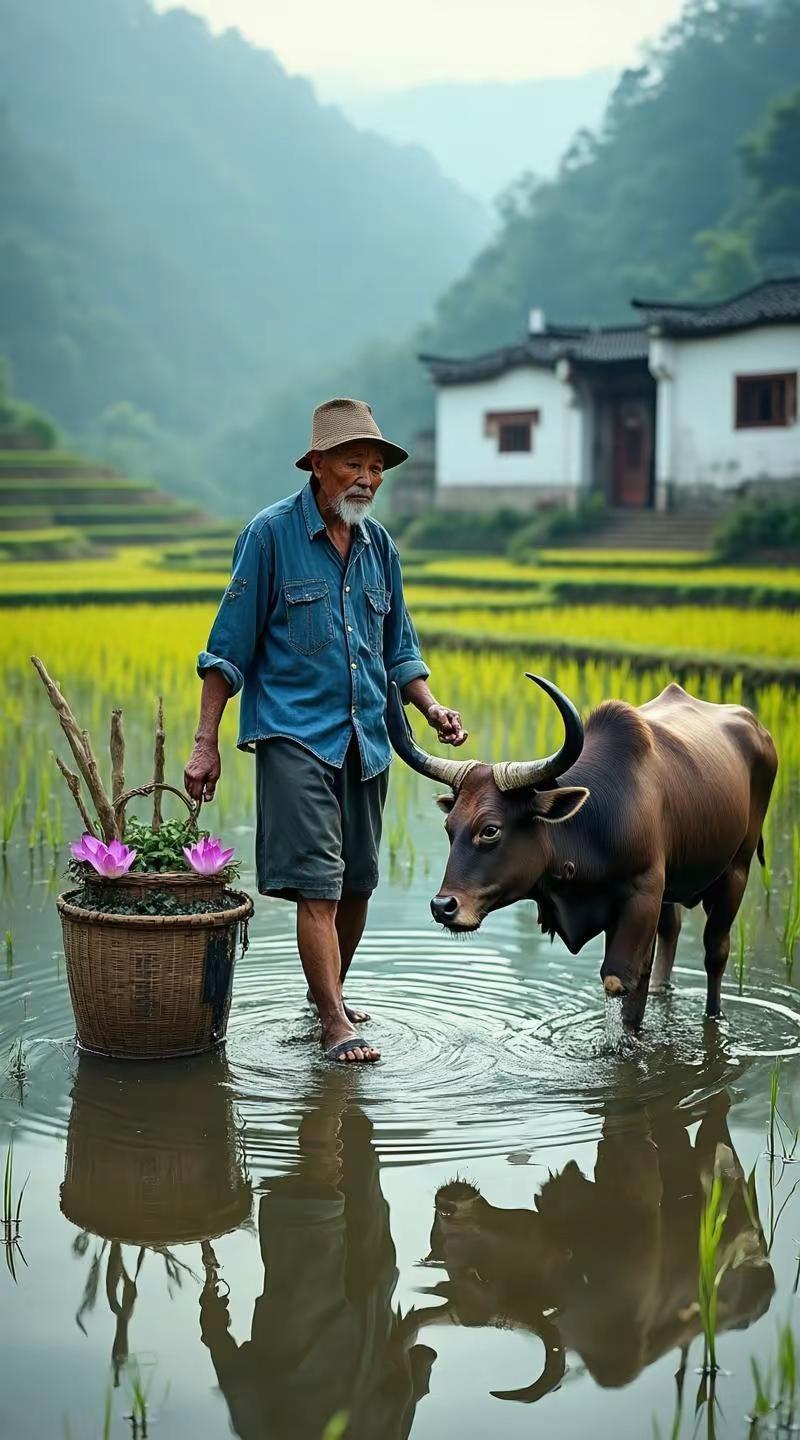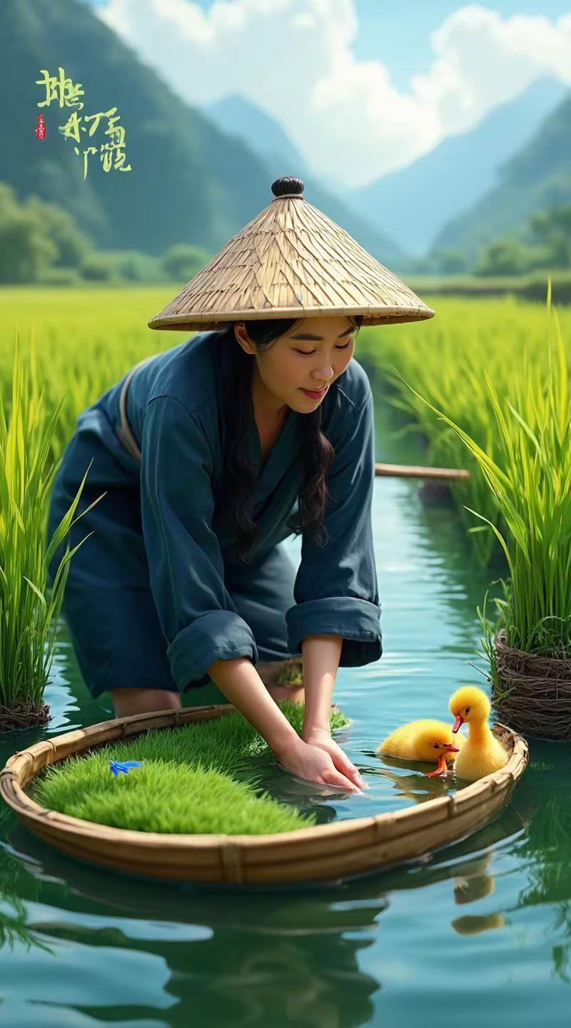 农村生活 插秧季节 插秧 山村美景 ai创作有趣视频