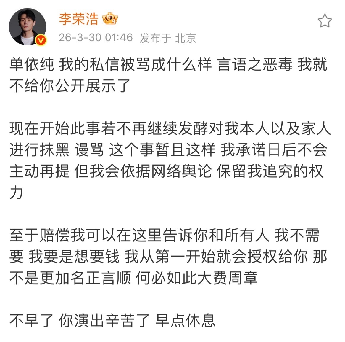 李荣浩:不要让好人受一点点委屈,也不要让坏人尝到一点点甜头