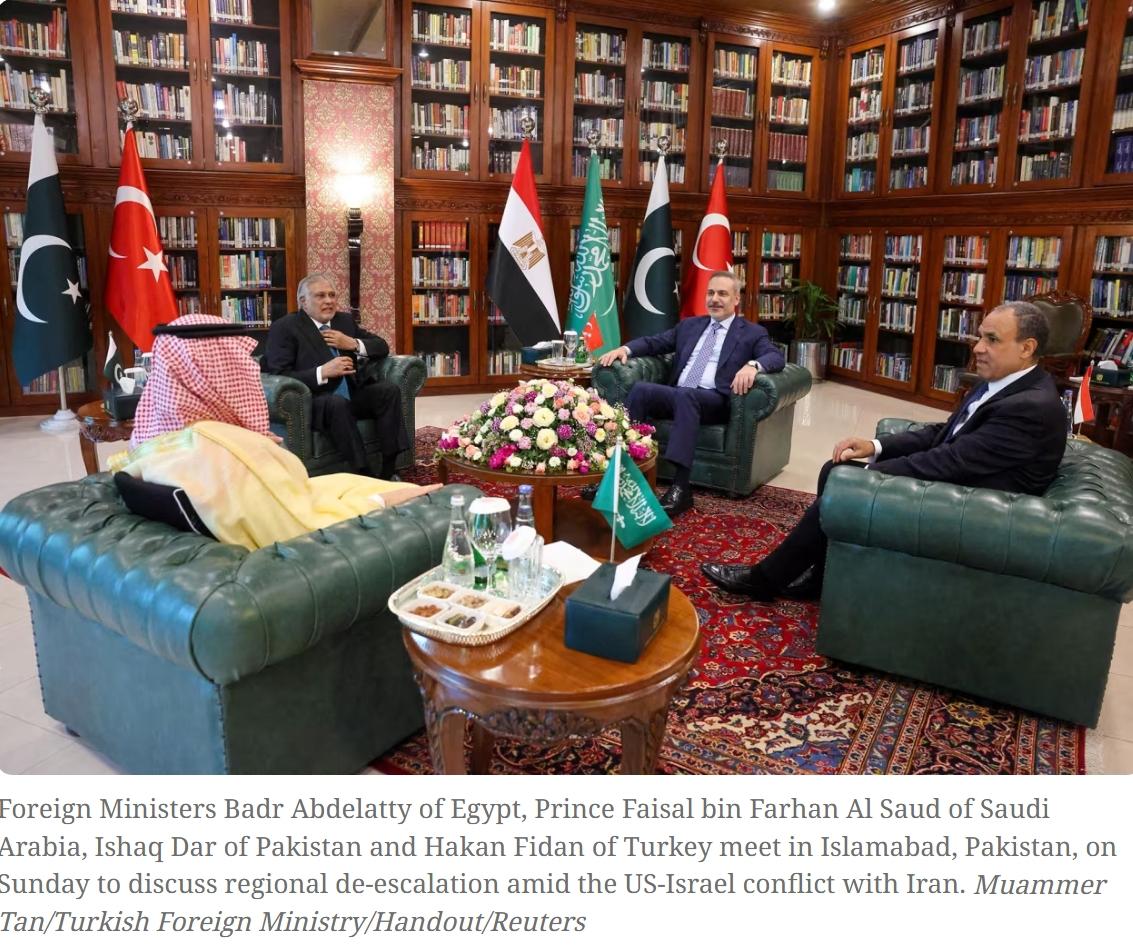 巴基斯坦表示准备在“未来几天”举办美伊会谈 在举行了一场由沙特、土耳其和埃及外长组成的四国会议后,巴基斯坦表示,准备在“未来几天”主办并促成美伊会谈,会议重点是缓和冲突和结束中东战争。 美国政府两位高级政府官员上周告诉CNN,特朗普政府官员正努力安排在巴基斯坦举行会议,讨论伊朗战争的退出渠道。 当地时间周日,巴基斯坦外交部长伊沙克·达尔在伊斯兰堡举行的四国第二轮磋商结束时说:“巴基斯坦将荣幸地主办并促成双方未来几天进行有意义的对话,以实现持续冲突的全面和持久解决。” 达尔还表示,他向来访部长通报了美伊在伊斯兰堡可能进行谈判的前景,并补充说沙特、土耳其和埃及的外长对该倡议表示“全力支持”。伊朗和美国“都已全力支持和信任我们的努力”,以促进会谈。 达尔还表示已与中国和联合国秘书长古特雷斯通电话,他们支持巴基斯坦的这一倡议。